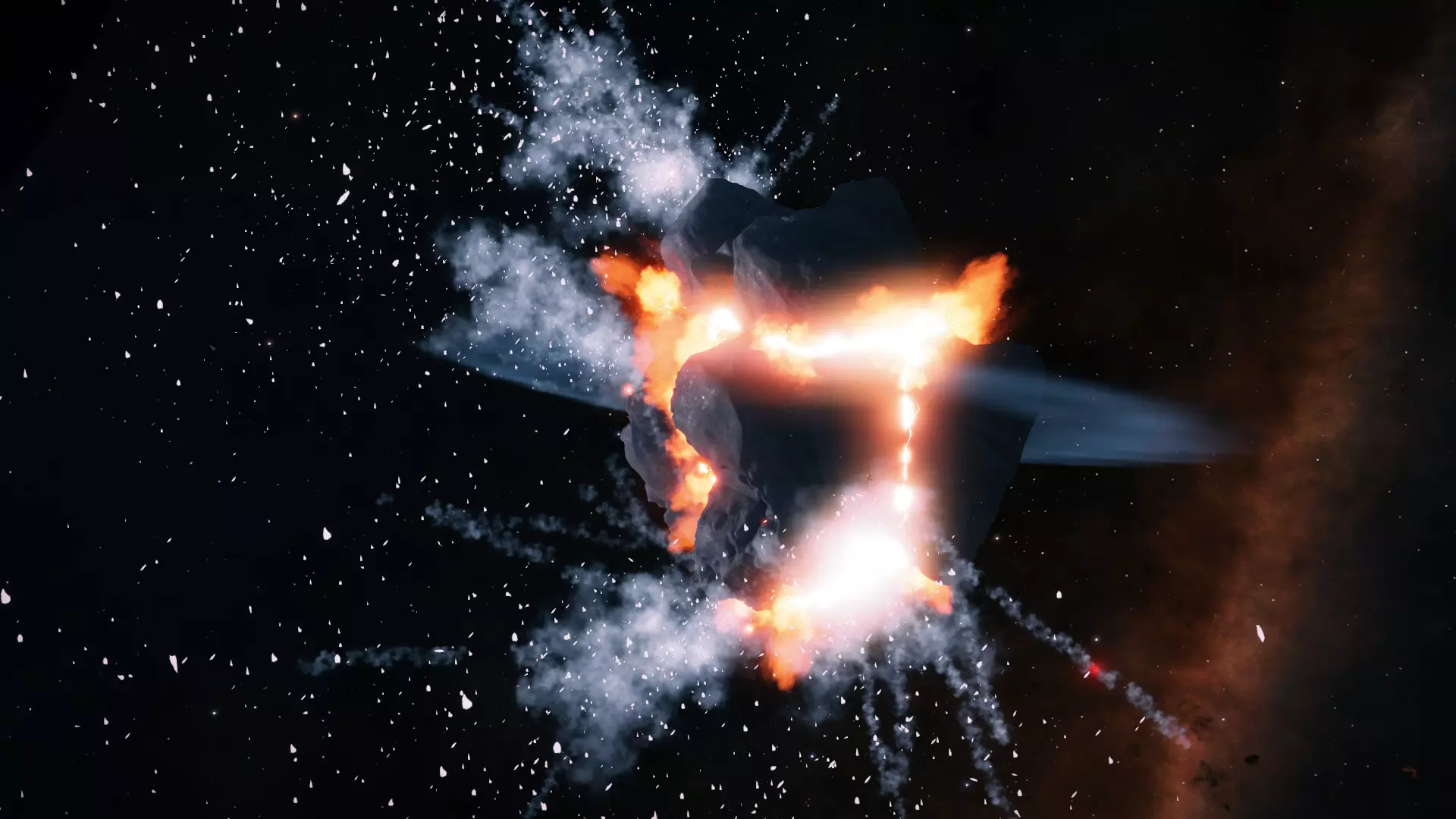 5. 小行星在靠近时,其表面会布满黑色条纹。 6. 小行星在靠近时,表面几乎完全被黑色或红色斑点覆盖,且明亮的光芒消失。 当你找到类似的小行星后,径直靠近它并释放地质勘探无人机。立即将无人机设为目标,然后等待它抵达小行星。