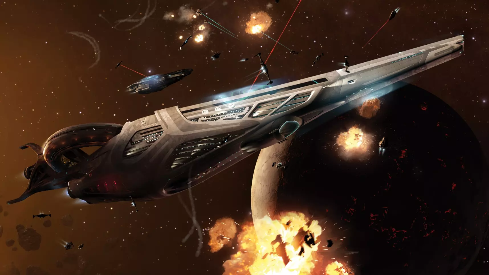 法拉古特号内部走廊 联邦战列巡洋舰呈棱角状,体积约为帝国战列巡洋舰的1.5倍。舰内为零重力环境,因此可以使用磁力靴。与帝国战列巡洋舰不同,法拉古特号是一艘纯粹的战斗舰。飞船的中央内部走廊是从法拉古特机库驶出的战斗机的加速区域,其内部结构旨在保护中央走廊免受外部攻击。 大型巡洋舰是用途最广泛的舰船。被独立企业以及国家和派系所使用。 大型巡洋舰分为: