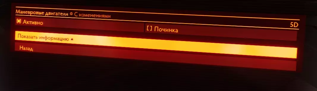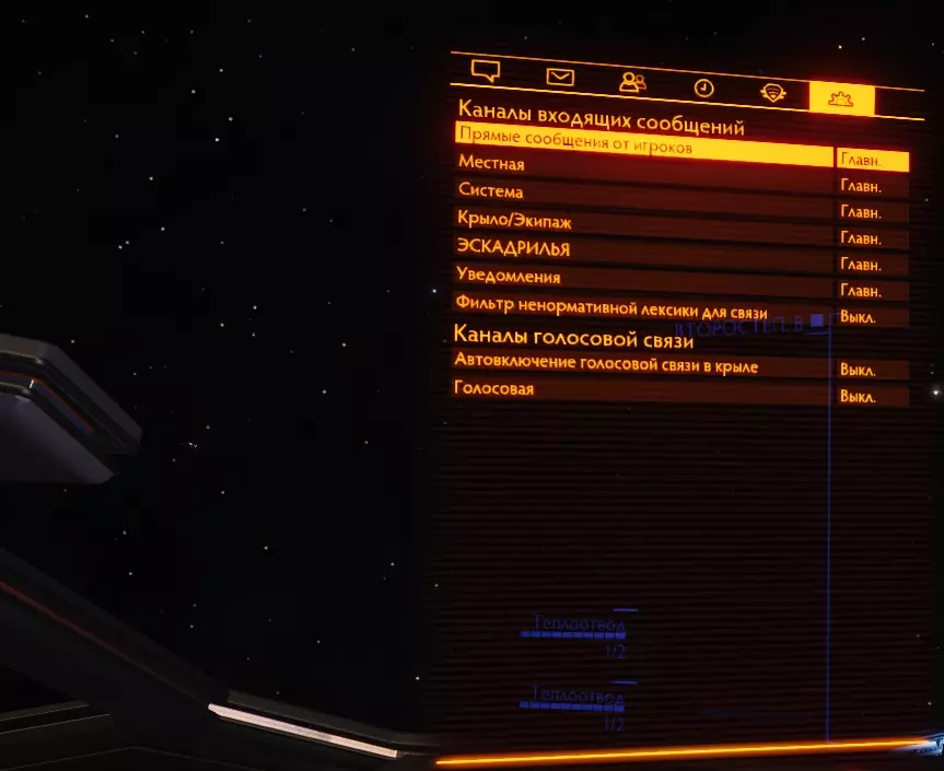 外部灯光 - 飞船的车灯 夜视功能 - 主要用于在“暗面”行星上着陆 起落架 - 用于行星着陆和与空间站对接 货舱 - 用于收集物品 信标 - 开启后,你的队友可以在地图上看到你对应的标记 重启/修复 - 如果飞船某个模块的状态降至0%,你可以进行重启系统和模块状态将略有改善。受损模块将能够继续工作。 无声运行 - 允许停止飞船向开放宇宙释放热量,从而从敌方雷达上移除您的飞船信号。通过【Delete】键启用。激活后,你所有的激活护盾都将关闭(护盾会产生电磁辐射,可能被其他舰船的传感器探测到),并且在该模式关闭前不会重新开启。冷却散热器的挡板会关闭,这将导致舰船温度上升,因为没有途径向周围太空散热,而模块会继续运行。同时,舰船的热信号会大幅降低,您的舰船将几乎不会被周围舰船的传感器探测到。请与热沉配合使用,以避免过热!