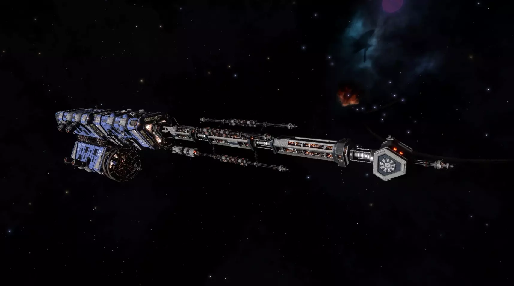 韦尔斯级运输舰 用于提升系统安全等级。为独立飞行员提供多种服务。 3303年7月7日,帝国参议员泽米娜·托瓦尔在HR 1185星系新建成的大型韦尔斯级运输舰“因陀罗”号的首航仪式上发表讲话。她以简短声明结束了启动仪式:“宇宙本质上充满敌意。因陀罗号将让HR 1185成为这一规则的例外。”3303年11月10日,小型势力【Tiliala保守党】在Tiliala星系被黑舰队逮捕,并被转移至Akaninigua星系的Tiliala级Wells型大型运输舰。 3304年1月12日,殖民地委员会在Colonia星系部署了【Enigma Dove Carrier】,作为以CMDR DoveEnigma13为主题的Enigma远征行动的终点。破坏者试图在1月30日摧毁船只,他们通过塔尔戈伊德传感器关闭了防御系统,但独立飞行员们集结起来,帮助殖民地收集了足够数量的元合金以修复损伤。1月31日,Dove Enigma的工程师表示,他们已收到大量元合金,足以抵御未来任何形式的破坏企图。世代飞船这类飞船可能需要航行数十、数百甚至数千年;在此期间,世代飞船的首批居住者会成长、衰老并死亡,而他们的后代将继续这场旅程。这类飞船必须完全自主,能够为自身提供燃料,为乘客提供食物、水以及必要的充电设备。根据已知数据,超过70,000艘初代飞船从21世纪的地球启航(其中第一艘于2097年出发),但似乎飞行过程并未如预期般精心规划。许多飞船的准备并不充分。在缺乏快速通讯的年代,许多潜在的殖民者孤身一人面临着可怕的风险,与文明世界完全隔绝,在虚空中穿越数千光年。 有些人成为了成功的殖民者。例如,“古老穆穆”殖民者的母星系——Phekda(也被称为Gamma Ursae Majoris和Phad),就是由世代飞船殖民的。然而,大多数飞船都未能成功。据闻,有些人甚至成功返回地面,带回了他们的冒险故事。