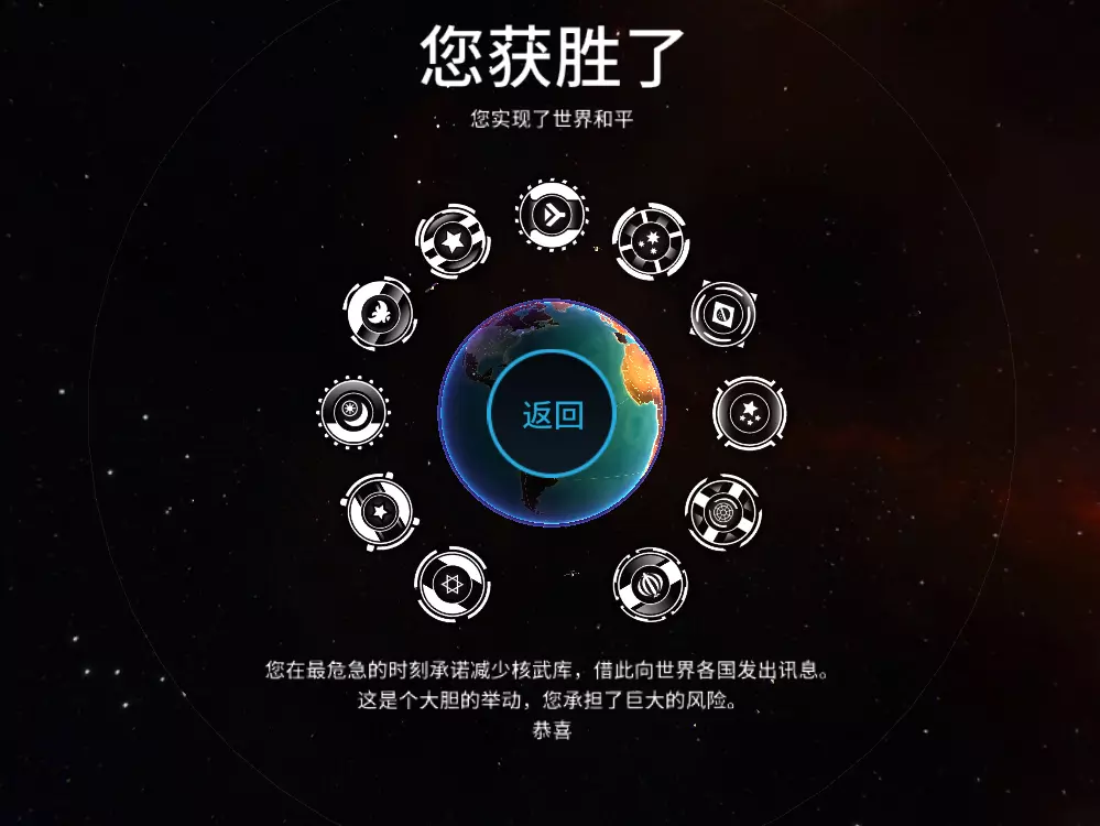 先发制人,一款核战游戏,但其中却贯穿了反战理念 这个就是两个隐藏成就其中一个,世界和平