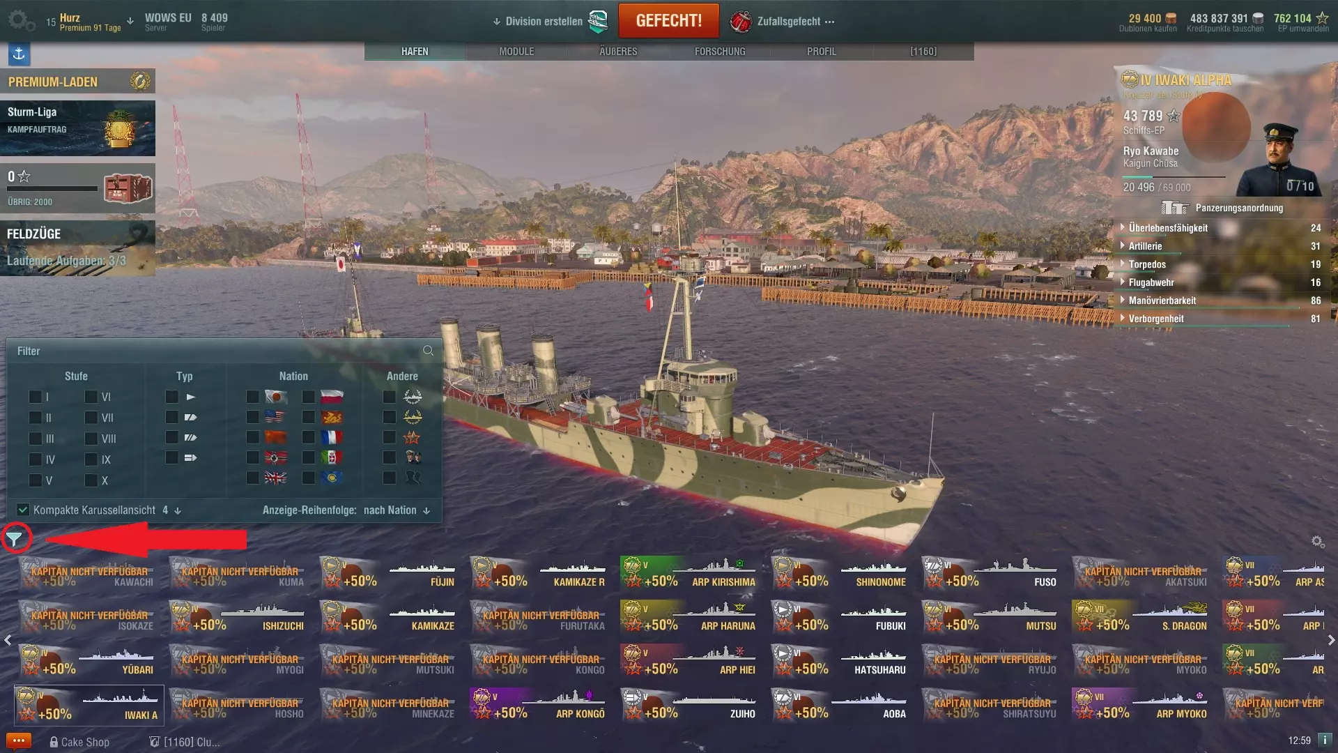 舰船排序/显示过滤器(在后期拥有更多舰船时非常有用)