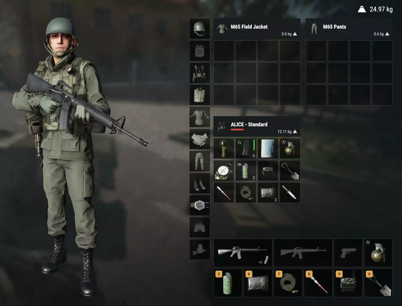 要轻松做到这一点,把你上衣和裤子里的所有东西都拖到背心(vest)里,然后换上纯绿色的衣服和头盔。 为什么呢?土绿色和环境融合得很好,而且你看起来还隐约像个俄罗斯士兵。大多数玩家识别敌人的关键是头盔形状。如果你用不同的颜色和头盔形状来干扰这一点,就能在开始交火前为自己争取到迷惑敌人的时间。从远处看,你甚至可能被误认为是俄罗斯人。对我来说,这无疑比经典的迷彩和头盔组合延长了从识别到首次射击的时间。 1.5 基础老鼠——间谍版