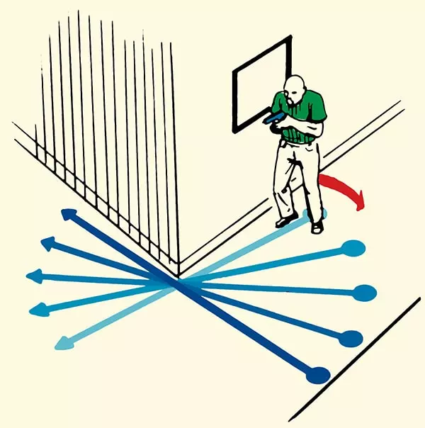 — 拐角移动 拐角是天然的瓶颈区域和伏击区。贸然进入拐角是致命的。新手最常犯的错误是在未清理拐角前,就将枪管或整个身体暴露在拐角处。如果敌人已瞄准等待,即使短暂暴露也会导致死亡。 不要过于靠近拐角。在大多数现代第一人称射击游戏中,过于贴近墙壁会使角色将武器举到非就绪位置。虽然走出时武器会迅速恢复就绪状态,但反应延迟可能会让你丧命。始终与墙壁保持一定距离,确保武器随时待命。 只要有可能,就应该采用“扇形搜索”清理拐角。“扇形排查”是一种有意识的区域清理技巧,操作方式是像切馅饼一样逐步、可控地调整视角角度。你无需大幅度摆动手臂离开拐角从而暴露自己,而是以大弧线移动,每次只暴露新区域的一小部分。这种方法能让你在保持自身暴露面积最小的同时,不断变换视野范围。如果操作得当,扇形排查拐角能让你在不过度暴露自身的情况下清理未知威胁。你的武器始终保持待发状态,移动也处于可控之中。 不过,如果你已经通过观察到的移动、听到的换弹声或其他能暴露敌人位置的迹象确定了敌人位置,那就不应该使用扇形排查,而应该对拐角进行预射击。