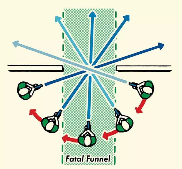 每一次横向移动都会展现室内新的“区域”,让你能够在目标发现你之前扫描角落并锁定目标。这种技巧让你有机会发现那些可能正守着某个角度但尚未察觉你接近的敌人。 使用这种方法时,最安全的方式是与门框保持一定距离,不要紧贴着门框。距离太近会限制你的视野范围,并增加武器穿模或因角落几何问题暴露位置的可能性。与门口至少保持一个身位的距离,以保持武器处于就绪状态并确保最大视野。 如果房间空间狭小、角度不佳或掩护有限,且通过区域扫描确认房间内安全,那么不要进入。占据已清理但毫无隐蔽性、无任何优势且会使你陷入危险的区域是没有战术价值的。 然而,如果你的视野无法覆盖所有区域,仍有角落未清理(例如因门向内开等原因),或者你已目视确认存在无法直接攻击的威胁,那么你必须采取以下行动之一: 1. 预先开火并以压倒性的行动突破。 2. 撤退并重新评估你的策略。 绝对不要“缓慢探查”最后一个角落,不要慢慢侧身进入未清理的区域。任何缓慢的动作或让敌方防守者有足够时间调整瞄准并将你击杀的行为都不可取。 你要么在清理区域,要么在突破。犹豫只会让你丧命。切角是你清理房间的首要步骤,尽量用它来避免近距离战斗,但门一旦打开,你就开始计时了。每一秒你站在通道里,都会增加你本已极高的死亡风险。 ——房间突入 大多数战术文献都假设清理房间需要不止一个人。有两个或更多突击手时,可以分工负责不同角度、控制不同区域并掩护突破点。然而,突击手往往需要独自行动。这意味着每次房间突入都是一场赌博,你将身体暴露在潜在的埋伏中,却没有后援掩护你的侧翼。独自突破房间是近距离战斗中最危险的行动,只有在切角已经观察到房间内部大部分情况后才能进行。房间突入始于外部区域肃清之后;当你从外部清除了所有可见的“扇形区域”后,就需要突入以清除任何剩余的盲点。这些盲点通常是门后的空间、深处的角落,或是任何因房间布局而被遮挡视线的地方。 门口本身,也就是我们之前提到的“死亡漏斗”,是你可能丧命的“杀戮区”。这里是防守方最可能瞄准的位置。你在那里停留的时间越长,死亡的几率就越高。一旦决定突入房间,你必须立即、迅速且果断地行动。