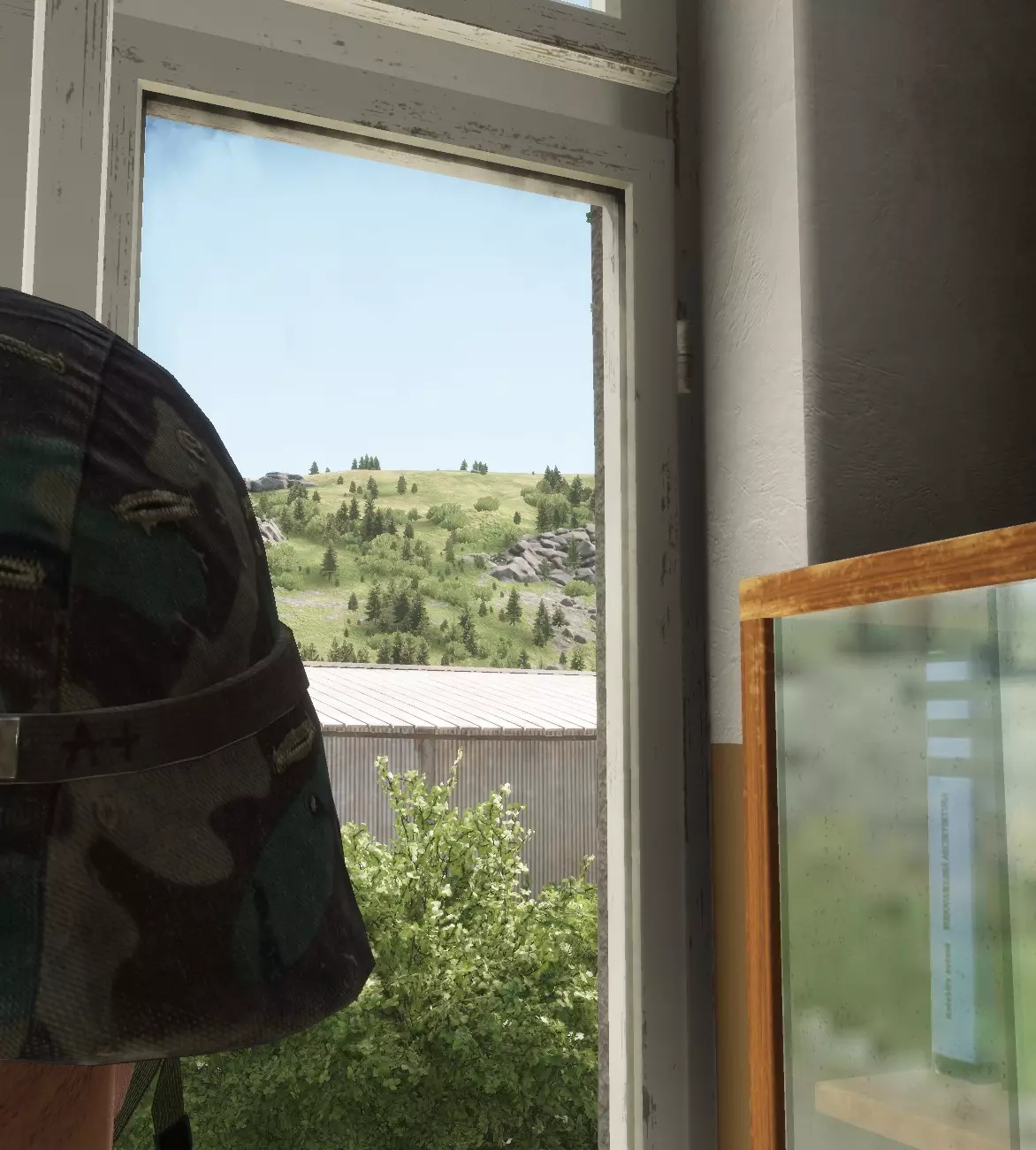 从远处看,你处于隐形状态,不会被发现。敌人必须使用瞄准镜和望远镜才能找到你,即便如此,除非对手仔细检查每一片树叶,否则你也很容易被忽略。这给了你,也就是【蹲逼玩家】充足的反应时间,可以在完成击杀后开几枪或迅速溜走。 在灌木丛中,这种隐蔽效果更好;树的底部会露出蹲逼玩家的手臂(我们可以通过长袖迷彩服来减轻这个问题),但树木仍然能很好地破坏你的轮廓,让你更难被发现。 《武装突袭:Reforger》中的隐蔽主要依靠灌木丛、草丛和阴影,但你要记住,对大多数玩家来说,阴影只有在特定距离内才会渲染,除非离得很近。不过要记住,如果这只躲在树根处的小老鼠开始被射击,那么它们的隐蔽就毫无用处了。隐蔽能隐藏你……但不能让你刀枪不入…… ——掩蔽物 掩蔽物是墙壁、岩石、沙袋,任何能阻挡子弹且你可以躲在后面的东西。它能保护你免受飞来的子弹伤害,并提供隐蔽效果,如果你蹲伏在这些东西后面,无论是部分还是完全隐蔽。 回到我们的例子……