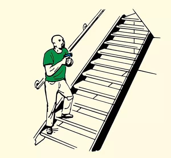 如图所示,老鼠会选择一个能主动避开最可能出现威胁位置的进入路线。这通常意味着以倾斜角度进入,大幅偏离门框,同时瞄准未清理的角落。向你正在清理的房间内开启的门后可能藏有敌人。如果你已经清理了房间的其他区域,这通常是最后的盲点,也是你必须首先处理的地方。 进入房间后,移动时要快速转身覆盖各个角度。除非房间已确认安全,否则不要在室内停留,在这种情况下,移动是有效的防御手段。犹豫和拖延会给等待的防御者调整瞄准的时间。 一旦房间清理完毕,立即离开并前往下一个房间。 — 走廊 走廊就是一个非常大的死亡漏斗。永远不要站在中间,因为这会让你暴露在来自多个角度的火力之下。紧贴门所在位置的墙壁,以最小化你的轮廓和暴露面积。 在走廊中移动时,要留意每个可能隐藏敌人的门口和开口。你经过的每扇门都可能是潜在的伏击点,走过的每一米走廊都会增加你被发现的风险。 军事室内近距离战斗训练强调正确的走廊移动技巧是有原因的——它们是城市战斗中最危险的环境之一。如果被迫穿过走廊: 1. 前进前清理走廊的每个区域。 2. 背靠你所跟随的墙壁。 3. 尽量减少在十字路口和T型路口的停留时间。 ——清理楼梯 楼梯也非常糟糕。楼梯和其他近身格斗移动一样,对“老鼠”(Rat)来说是极其危险的地方——如果建筑物内可能有防守者,且他们可能正在防守楼梯的话。楼梯是垂直的通道,没有任何掩护,移动选择有限,上下楼梯的任何动作都非常容易预测。