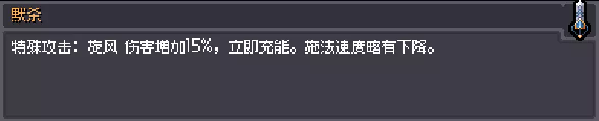 描述:过去曾因高贵的血统而备受推崇,如今却只是一个引人注目的存在。 效果:施放增益魔法时,为周围5格内的玩家附加增益效果;施放增益魔法的消耗增加50%;复活其他玩家所需时间缩短30%;最终武器攻击力-10%。 红衣猫