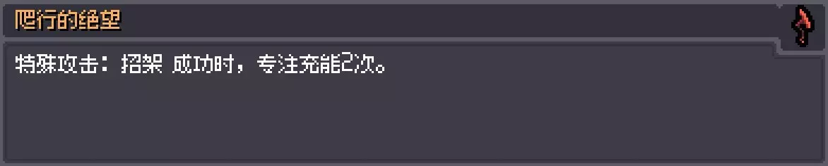 描述:阴影遮住了脸,但只是因为脸盘很宽。 效果:火焰属性伤害+5,冰属性-5。 解锁:一次游戏中将火焰属性伤害提升至50。 红狐狸