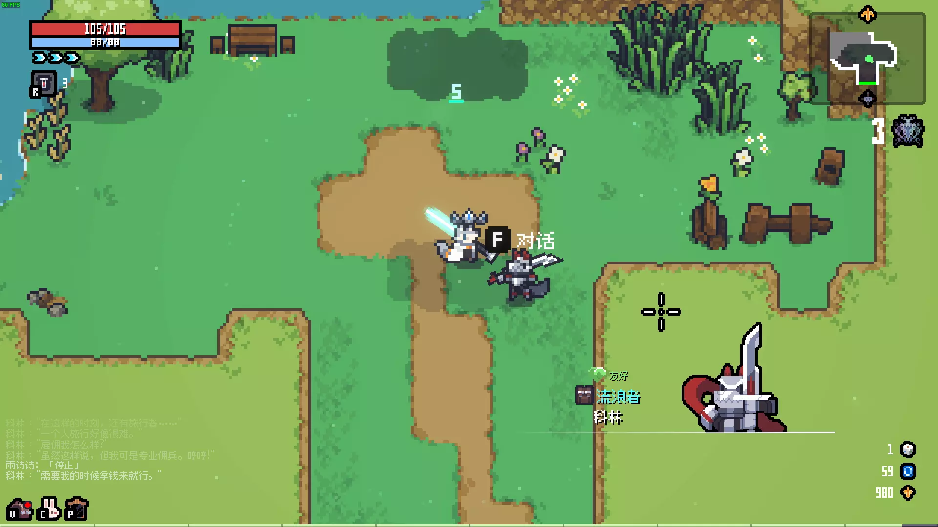 描述:... 效果:死亡时以60%生命值复活(上限2次),最大HP上限固定为50。 解锁:过完新手教程之后解锁。 冒险家兔子描述:梦想着冒险的你,为了完成旅程做好了万全的准备。 效果:冲刺次数+1,冲刺恢复速度+10%,魔法加速-50%。 解锁:拥有该开发商前作:Dungreed。 事件 科林随机刷新在关卡内,可雇佣或者击杀获得500金叶子。