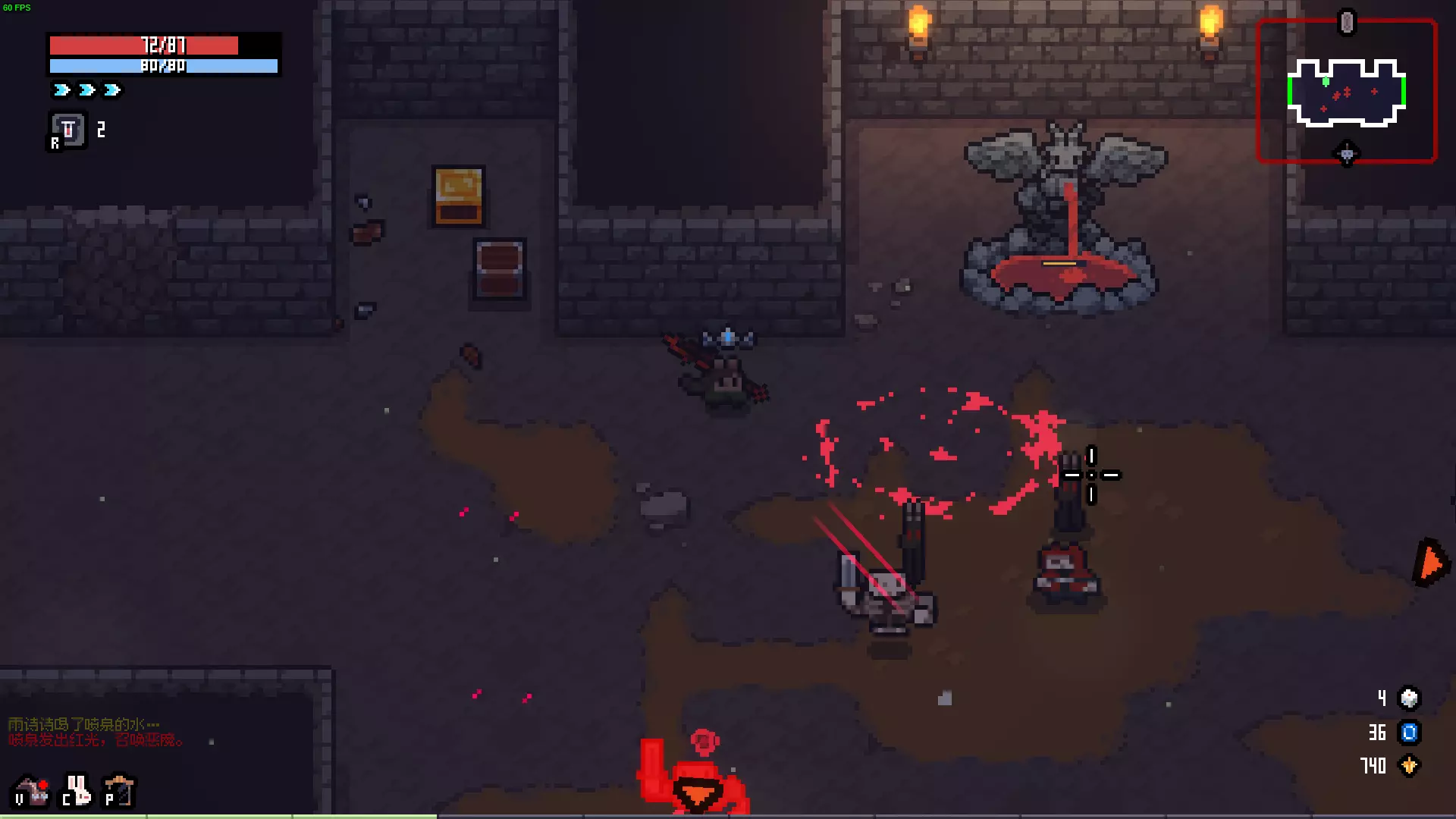吸血鬼随机刷新在关卡内,花费33%血量可换取一次道具,或击杀获得道具【累计献血5次解锁角色】。