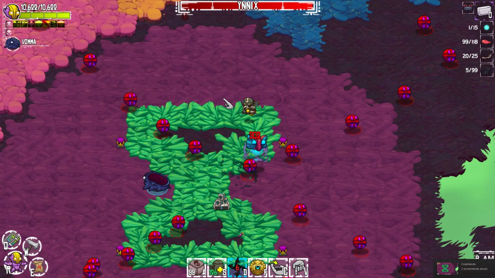 攻击:跳跃 奖励:解锁下一个生物群系!太棒了! 首领:Bawg(1/2) 注意:本指南仍在制作中。我会在第二次“疯狂难度”通关过程中持续补充内容。 注意:所有策略和装备配置均基于“疯狂难度”的游戏体验。此外,为了确保所有饰品/ gadgets /药水都可用,我在挑战首领前完成了所有支线任务。因此,所有首领战的装备配置是相同的。装备配置: 饰品:水银蝙蝠靴、医药包、戴维灯、接地器 护甲/武器:23级装备(格雷纳梅尔)+血根 技能栏:碎石炸弹、格雷纳梅尔治疗药水、手指飞镖、Dbot 使用药水:力量药水、防火药水、抗毒药水、毒液药水、蜘蛛野兽药水、长寿药水、挥砍药水、加速药水+愤怒煎蛋、布莱格玛尔点心 宠物:3级沃玛 Ynnix 通过支线任务解锁,位于哈斯特灵魂之地。 攻击方式: 主要攻击:巨型蓝球 主要攻击:末日X 第二阶段(50%生命值):分裂 战斗策略: Ynnix会使用巨型蓝球攻击,这些蓝球会定向发射并追踪玩家,在屏幕上缓慢移动,同时最多存在2-3个,一段时间后会消失。这是使用指节镖和/或炸弹进行攻击的最轻松阶段。