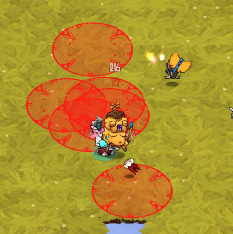沃杰克这些鬼祟的小东西会突然出现在你脚下!它们会钻到地下——所以要攻击它们的入口处。红色圆圈表示它们的出口——移动到边缘,当它们钻出地面时你就能击中它们。还要注意它们的导弹——它们会突然出现然后发射一轮齐射!(更高等级的怪物会更频繁地发射/造成更严重伤害的齐射)。