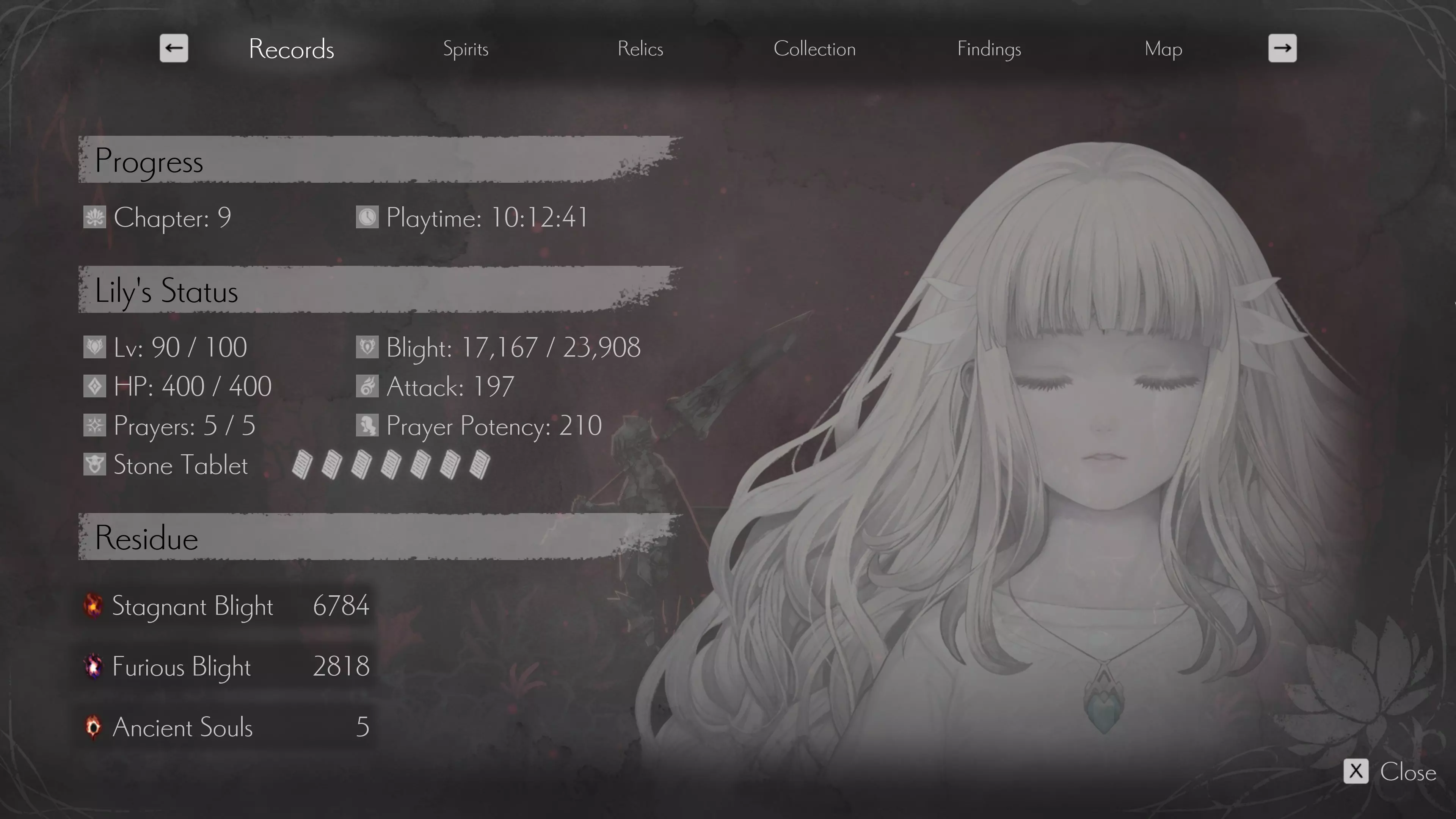 我还想明确一点,你的游戏进度会落后于正常水平。下面的截图是在100%完成度后截取的,你会发现我有足够的枯萎精华将我使用的所有灵体升级到满级,但我却被迫用4/5级的灵体去对抗最终 boss。这意味着大多数 boss 需要花更长时间来击败,但不会到无法应对的程度。