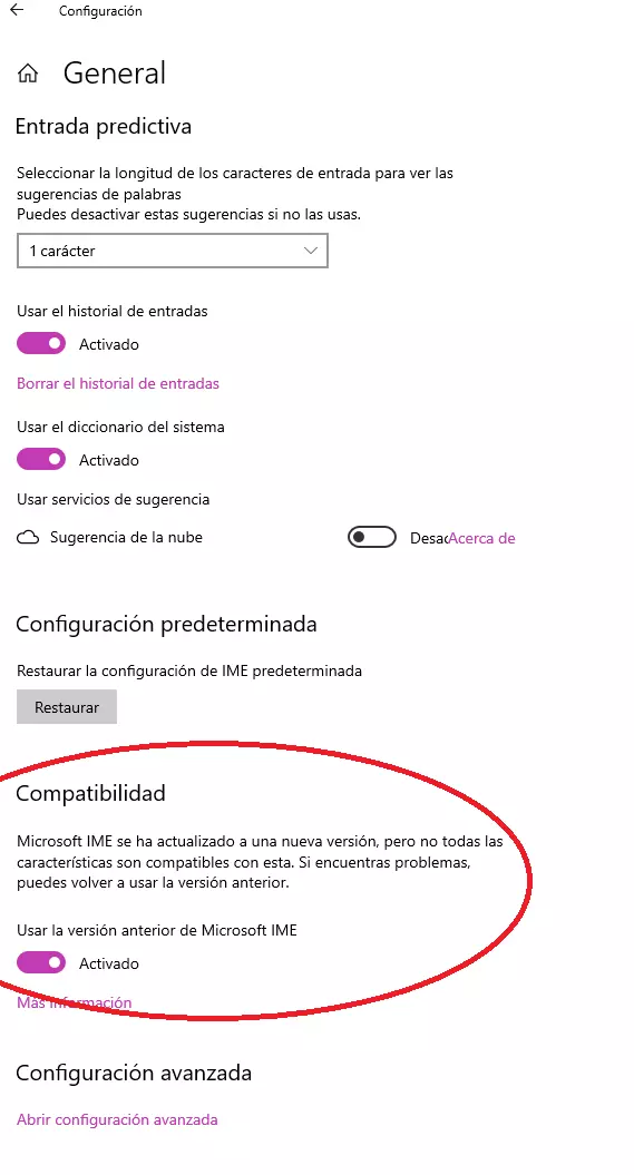 然后我们一直滚动到底部,开启旧版微软输入法的兼容性。