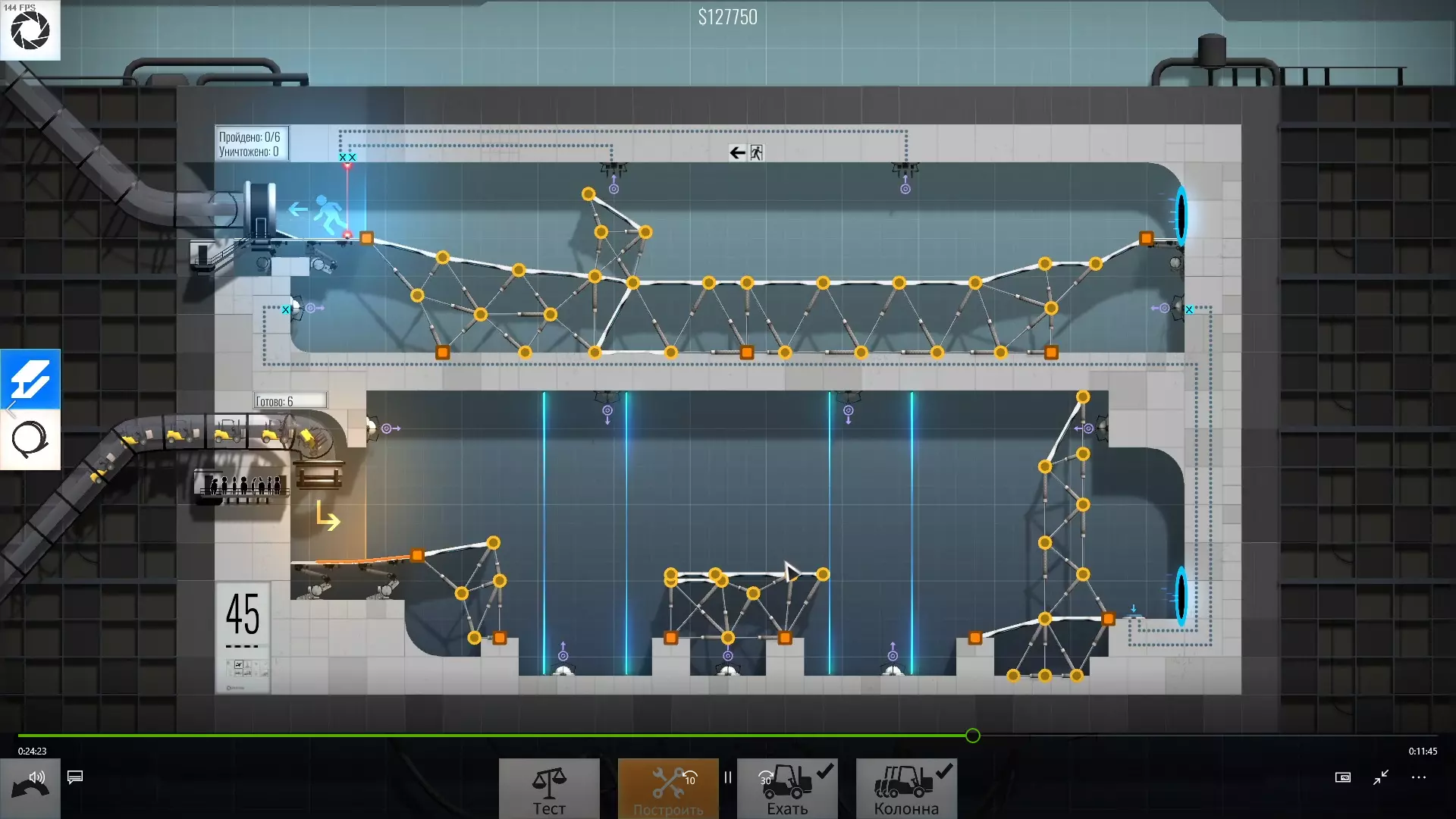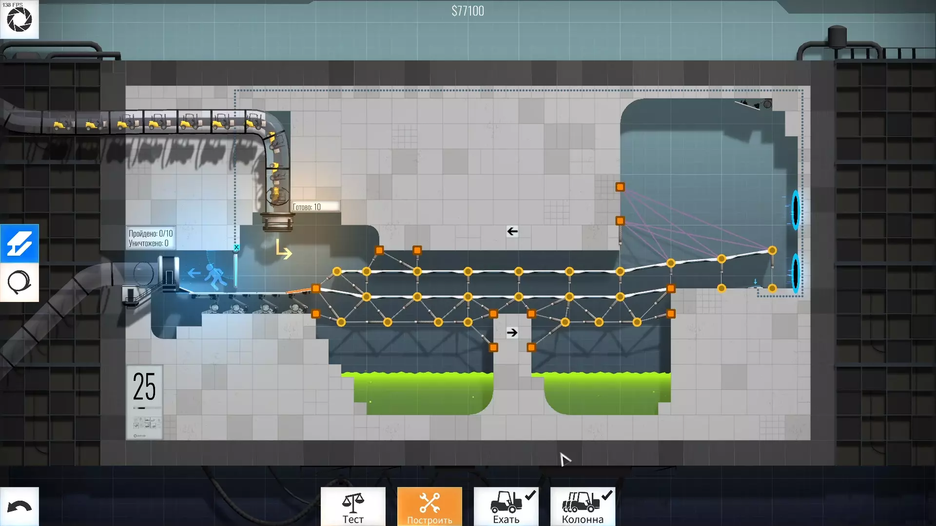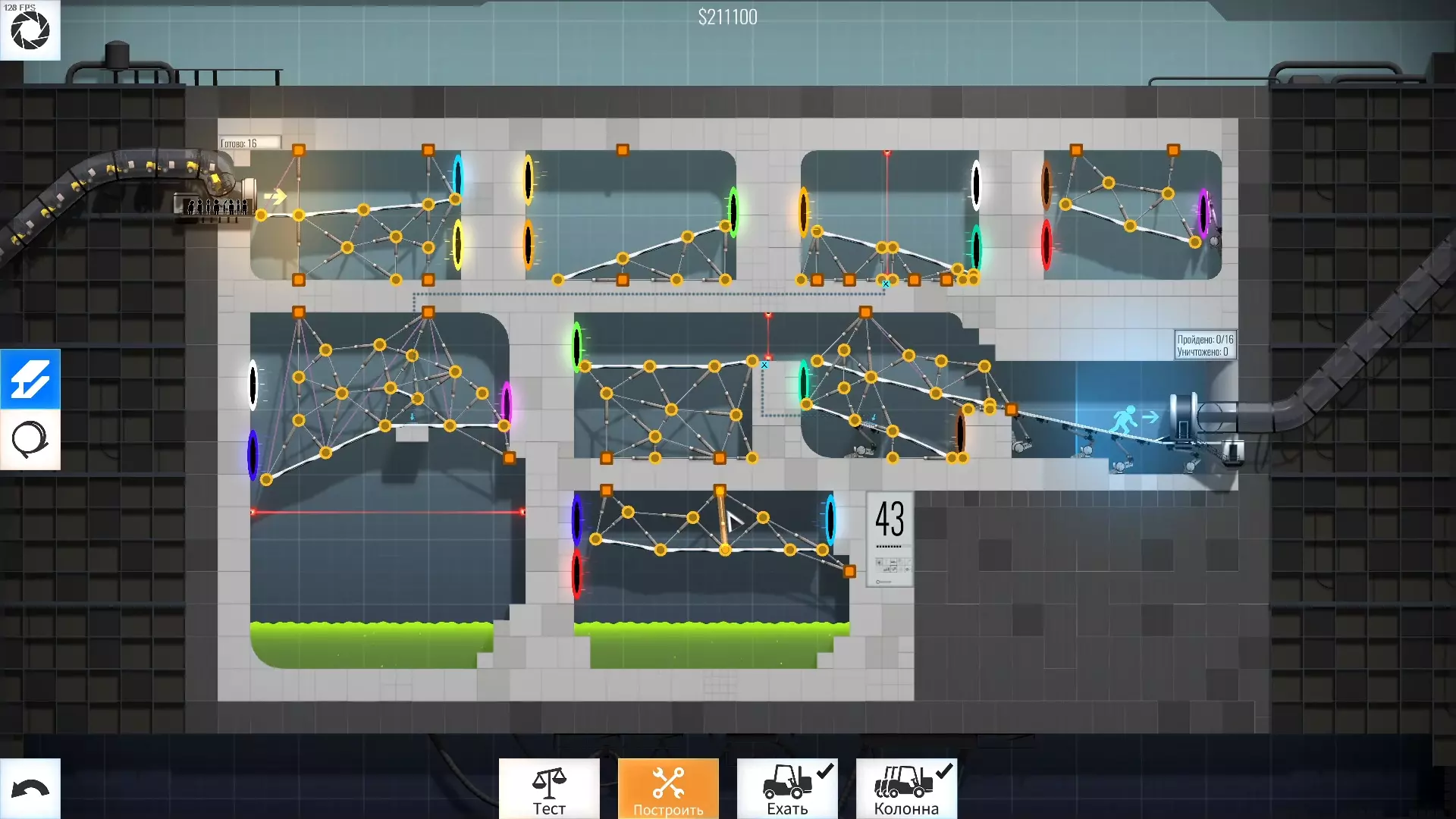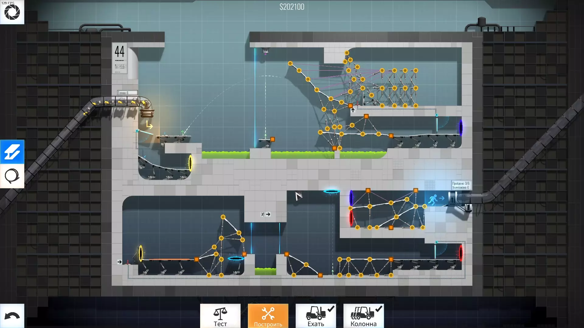 完成游戏本体及所有DLC的全部关卡。 一些说明 本指南将展示我个人设计的最终桥梁,借助这些桥梁我成功达成了游戏100%完成度,并进入了前3%玩家行列。 所有桥梁均为我在游戏过程中亲自设计和开发。我没有查阅过任何攻略,也没有看过任何通关视频,所以有些桥梁的设计看起来可能很奇怪,还有些关卡我感觉自己的玩法和开发者的初衷完全不一样。此外,在指南开头我附上了一段视频,直观展示了所有关卡,并证实我的桥梁能够通过关卡,包括带有立柱的情况。本指南和我并不鼓励大家尝试建造完全相同的桥梁,这份指南更多是为了让你在某个关卡卡住或不知道如何通过时,能找到思考方向。攻略 主线游戏 1 关卡难度:简单