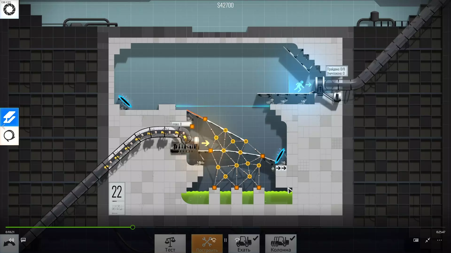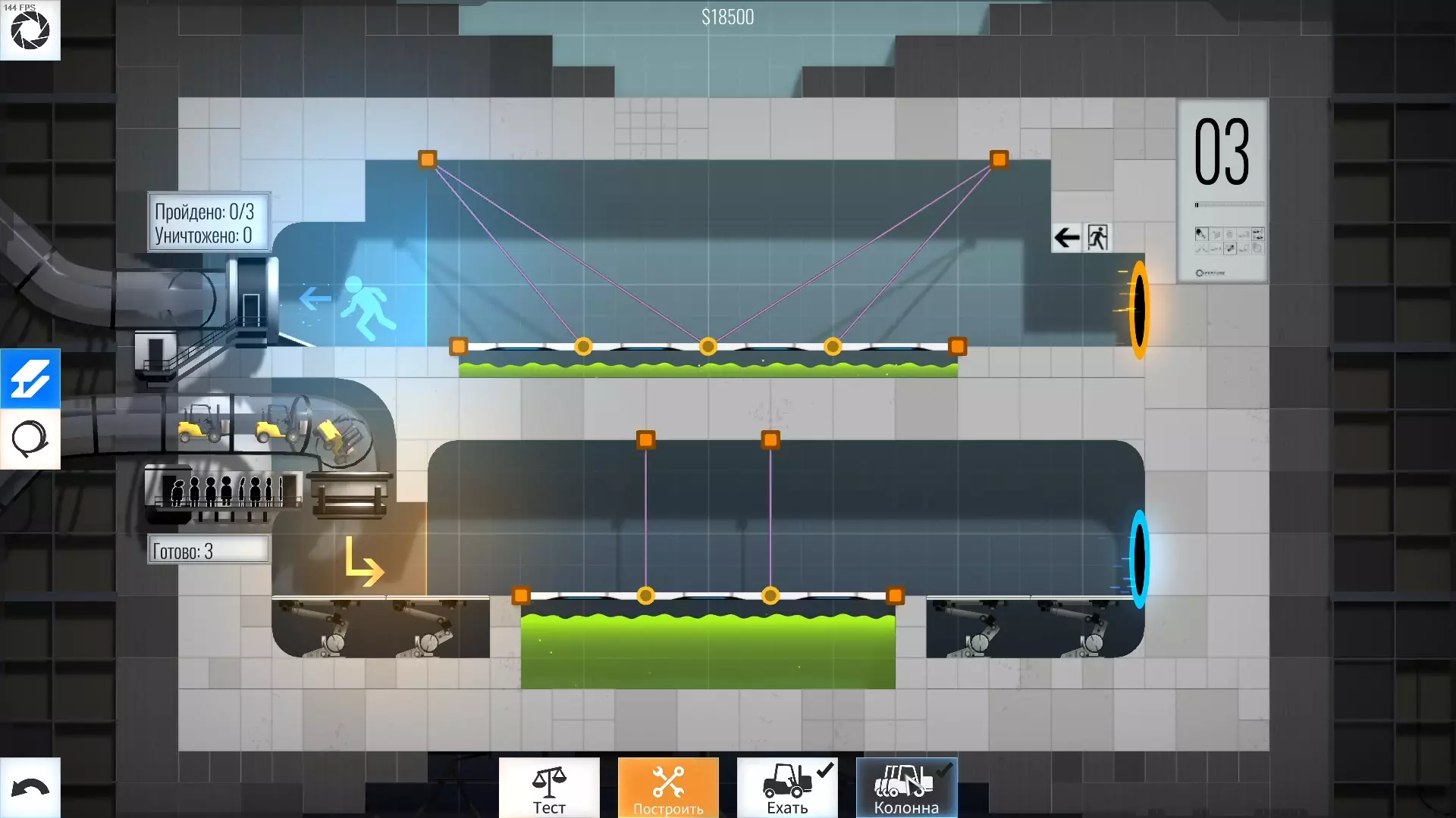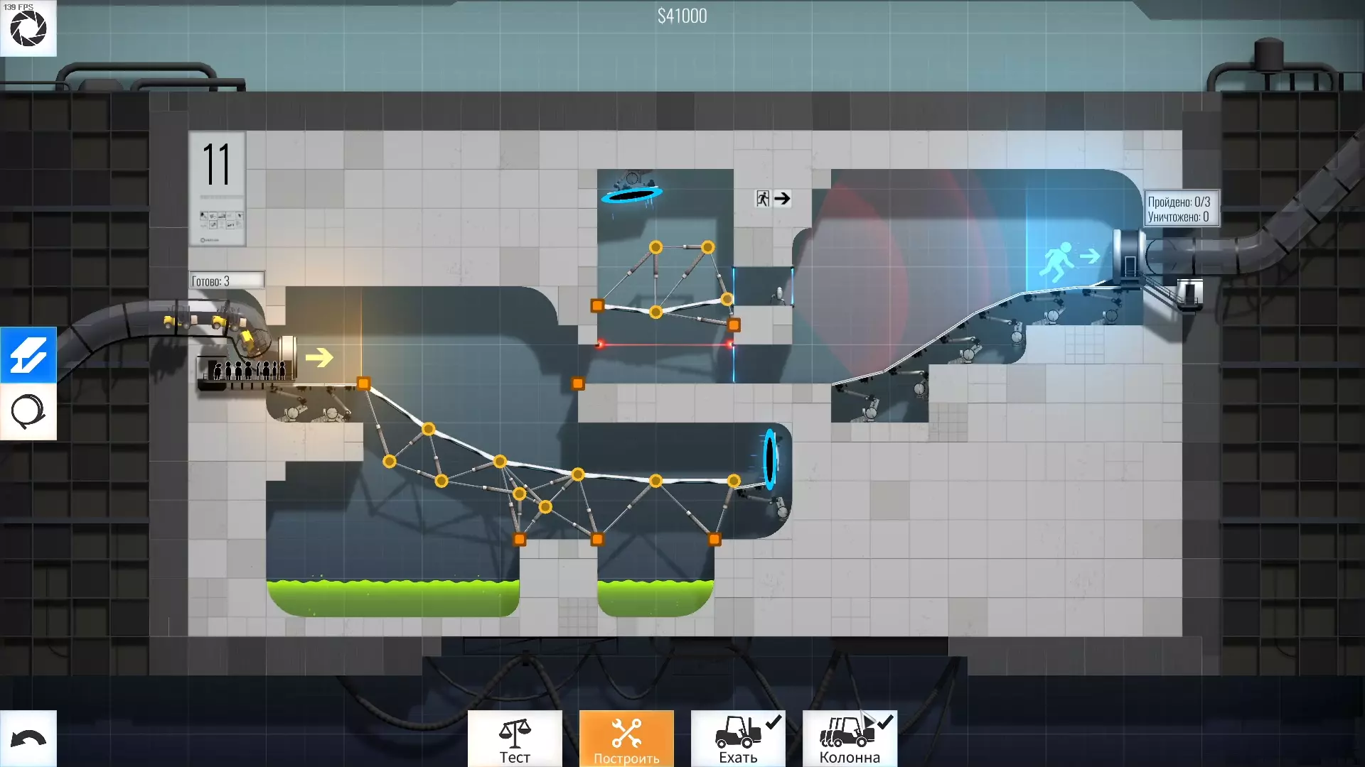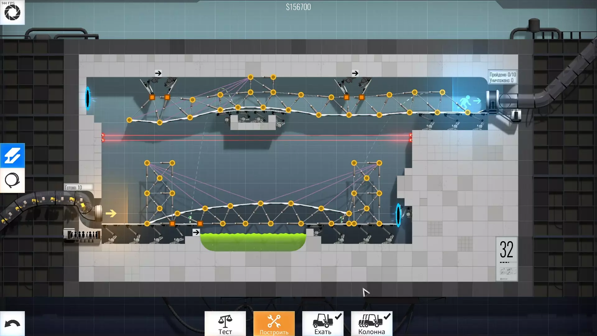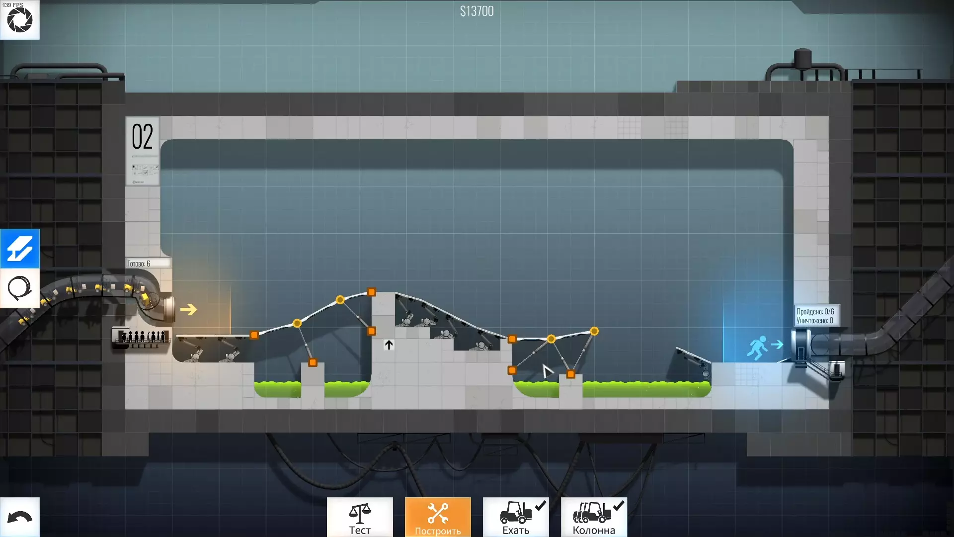 完成游戏本体及所有DLC的全部关卡。 一些说明 本指南将展示我个人设计的最终桥梁,借助这些桥梁我成功达成了游戏100%完成度,并进入了前3%玩家行列。 所有桥梁均为我在游戏过程中亲自设计和开发。我没有查阅过任何攻略,也没有看过任何通关视频,所以有些桥梁的设计看起来可能很奇怪,还有些关卡我感觉自己的玩法和开发者的初衷完全不一样。此外,在指南开头我附上了一段视频,直观展示了所有关卡,并证实我的桥梁能够通过关卡,包括带有立柱的情况。本指南和我并不鼓励大家尝试建造完全相同的桥梁,这份指南更多是为了让你在某个关卡卡住或不知道如何通过时,能找到思考方向。攻略 主线游戏 1 关卡难度:简单
