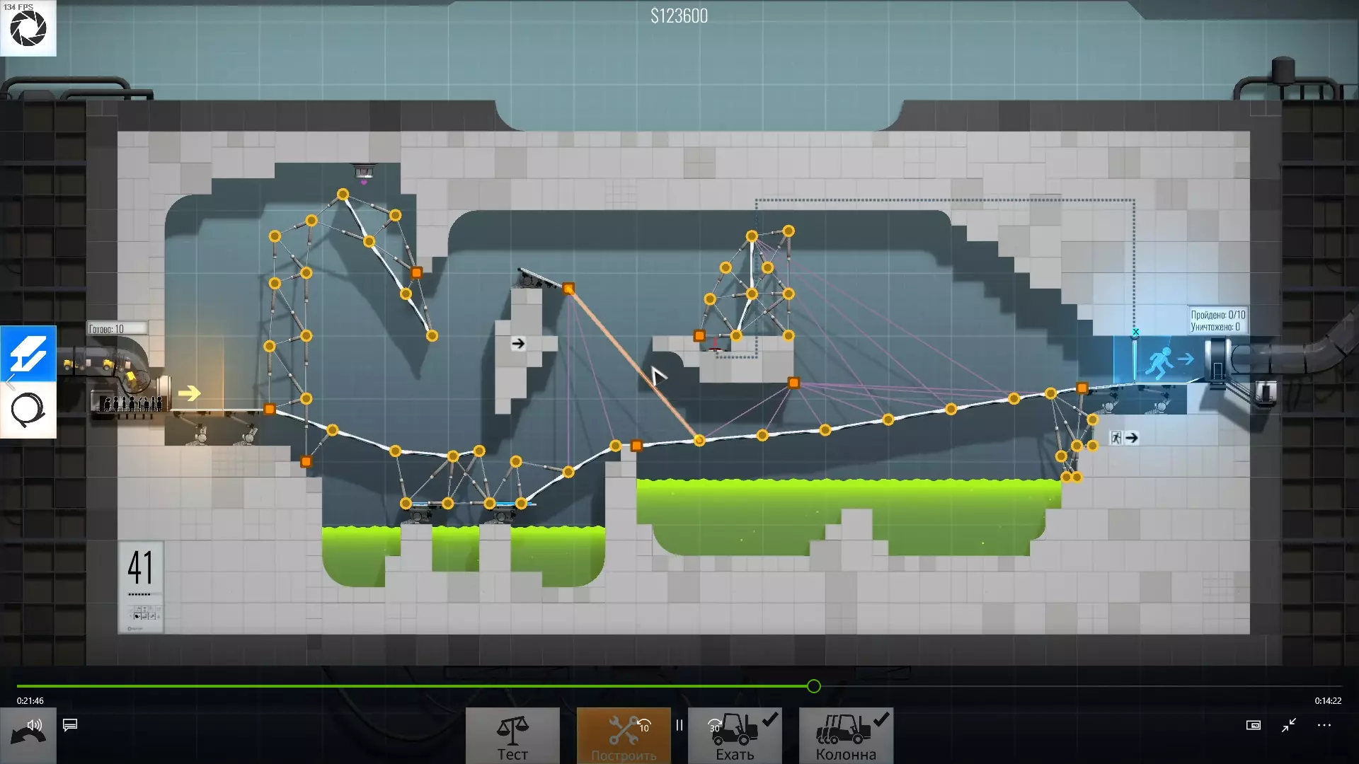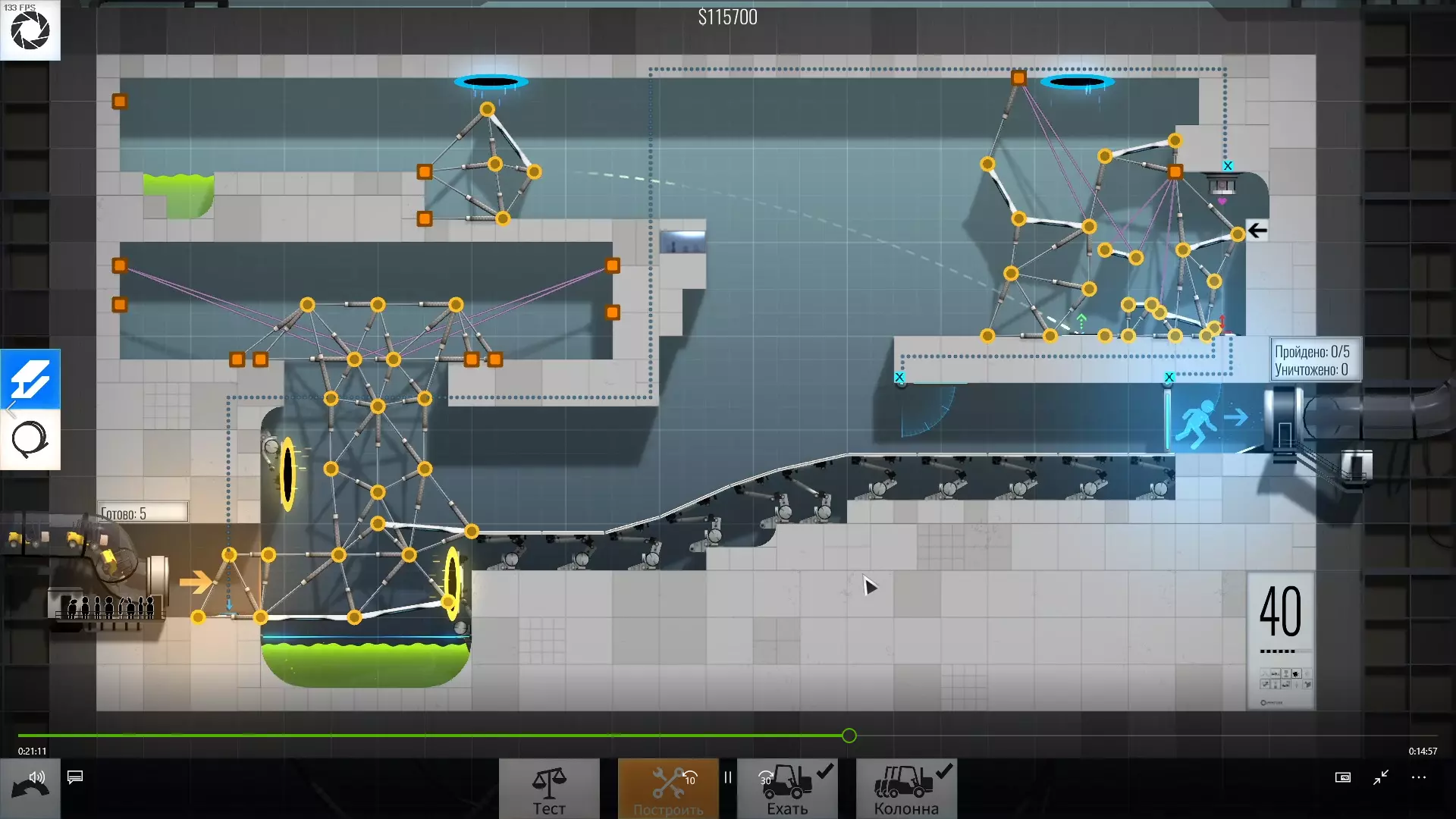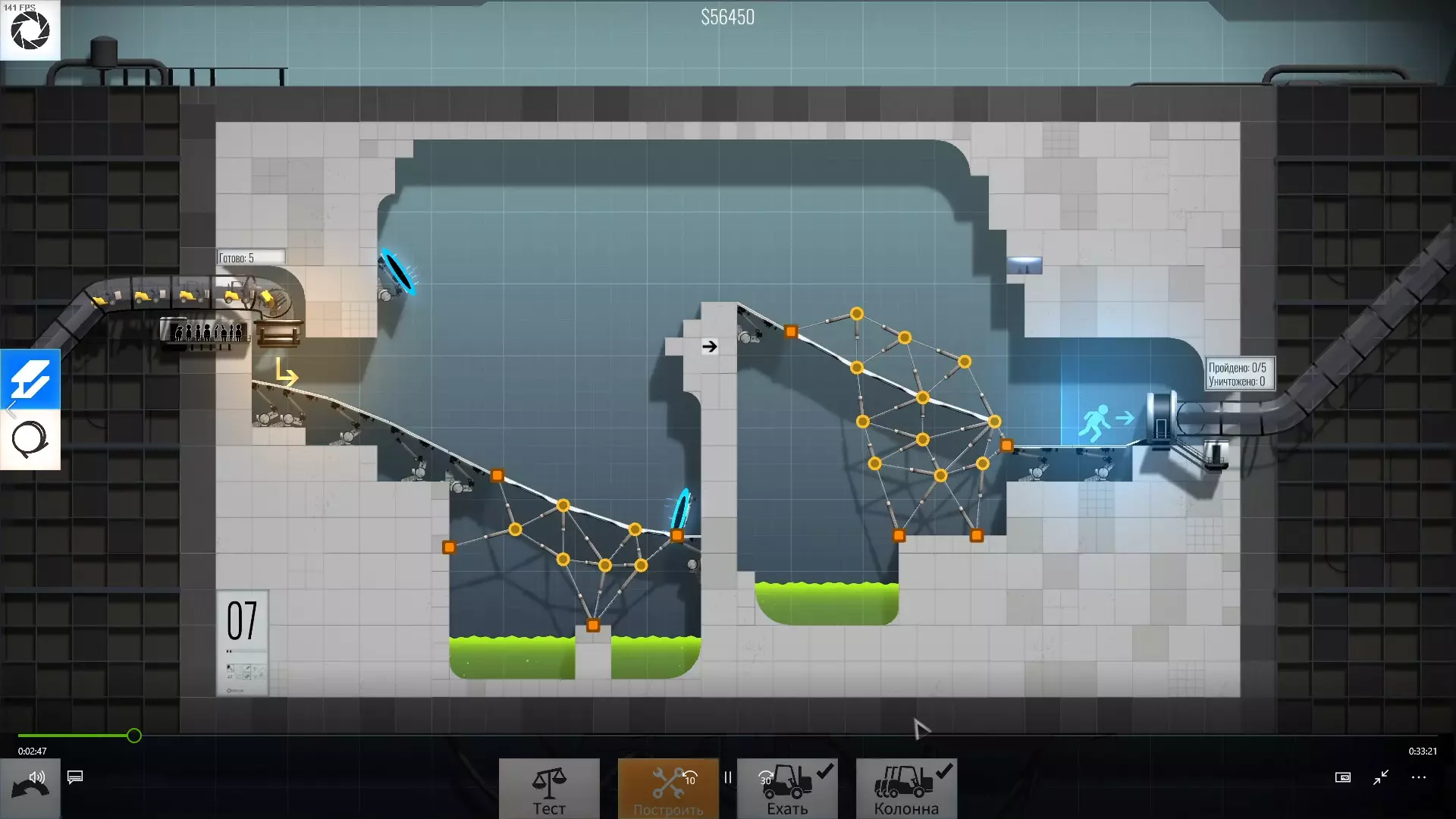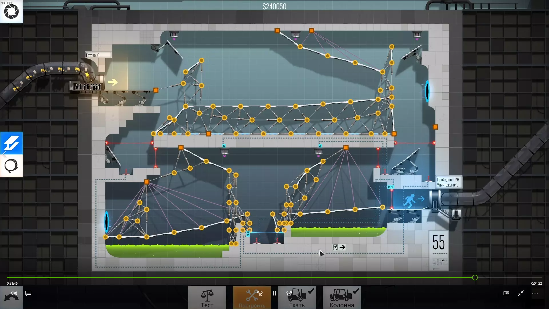 完成游戏本体及所有DLC的全部关卡。 一些说明 本指南将展示我个人设计的最终桥梁,借助这些桥梁我成功达成了游戏100%完成度,并进入了前3%玩家行列。 所有桥梁均为我在游戏过程中亲自设计和开发。我没有查阅过任何攻略,也没有看过任何通关视频,所以有些桥梁的设计看起来可能很奇怪,还有些关卡我感觉自己的玩法和开发者的初衷完全不一样。此外,在指南开头我附上了一段视频,直观展示了所有关卡,并证实我的桥梁能够通过关卡,包括带有立柱的情况。本指南和我并不鼓励大家尝试建造完全相同的桥梁,这份指南更多是为了让你在某个关卡卡住或不知道如何通过时,能找到思考方向。攻略 主线游戏 1 关卡难度:简单
