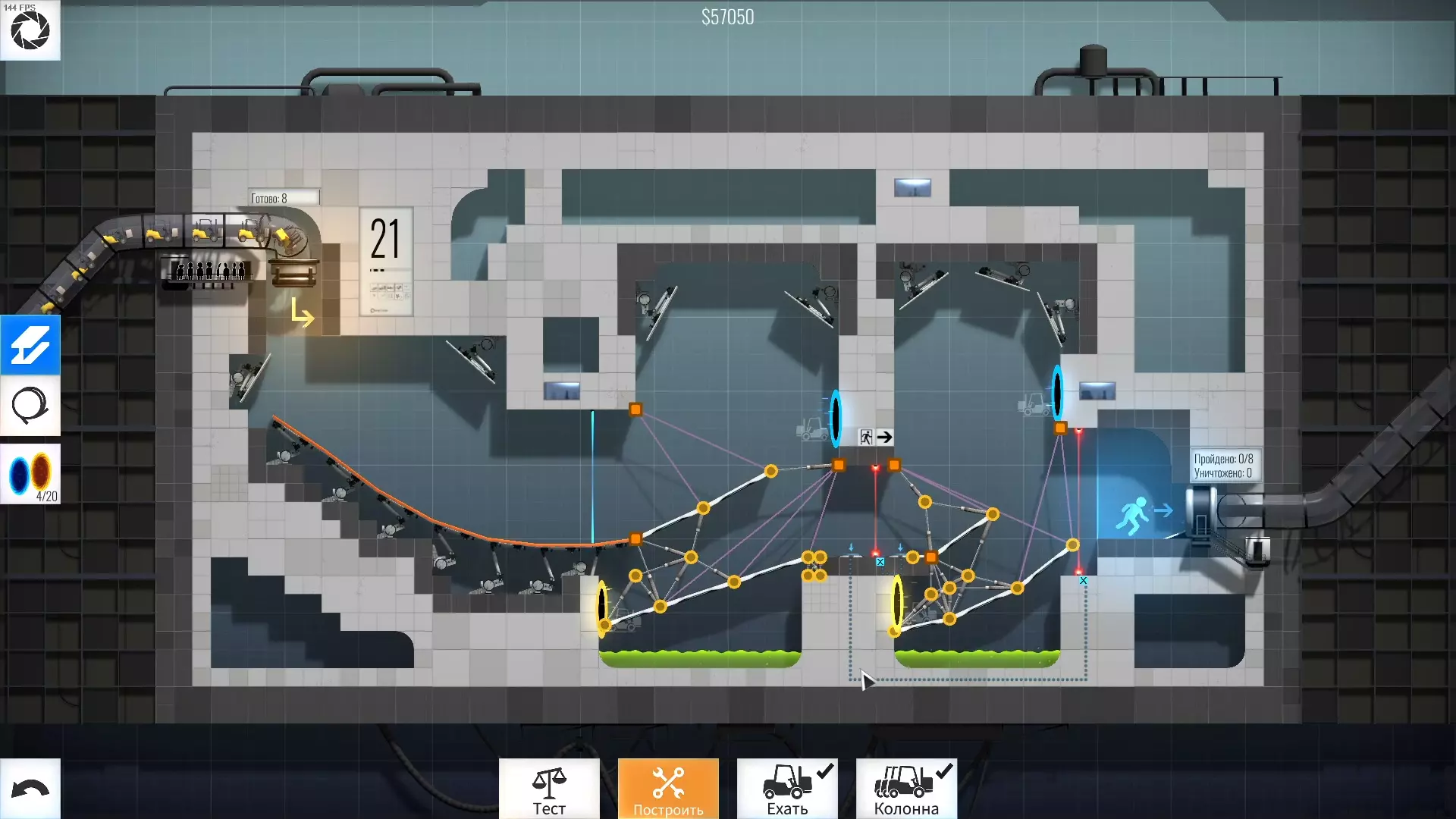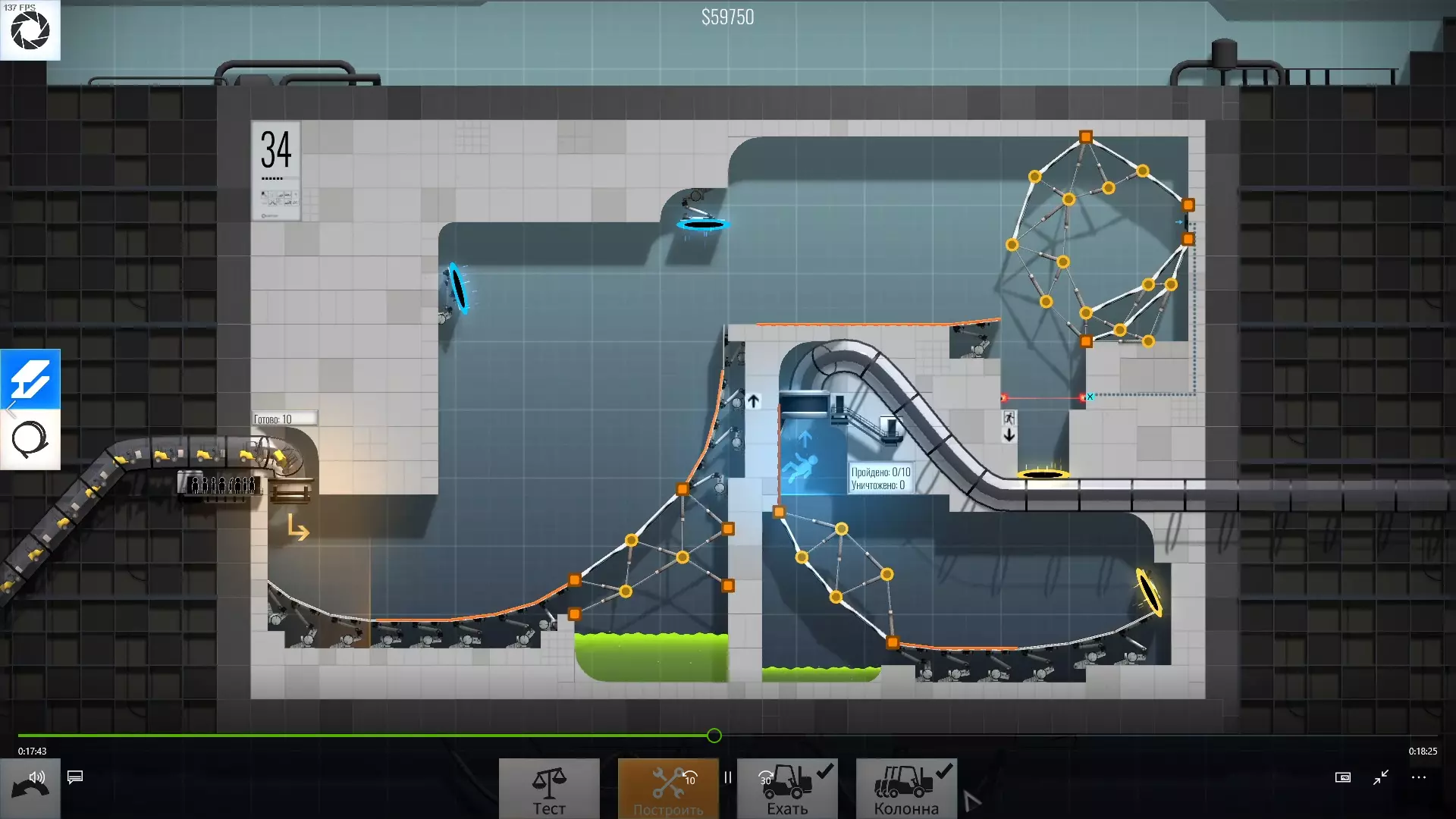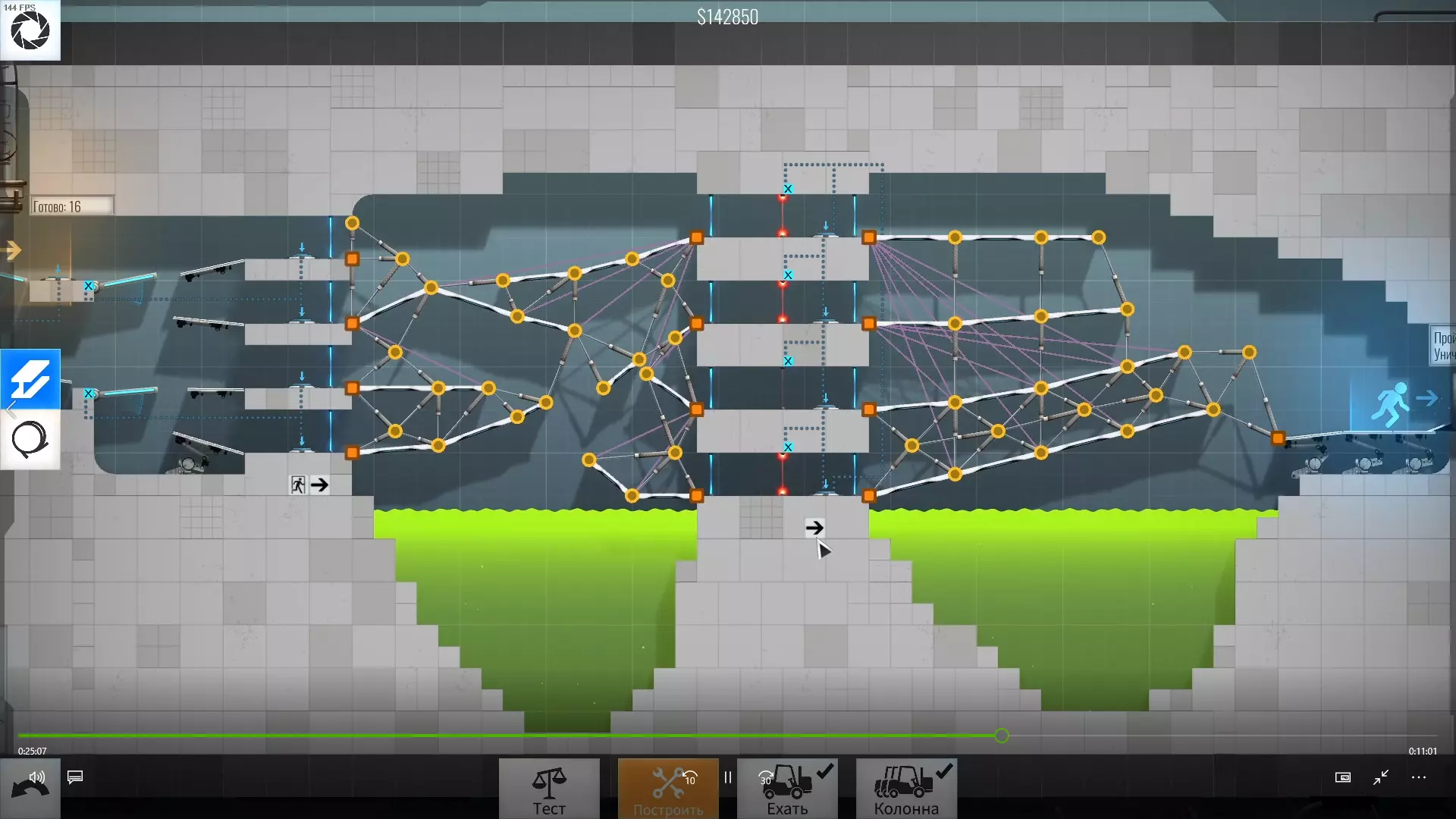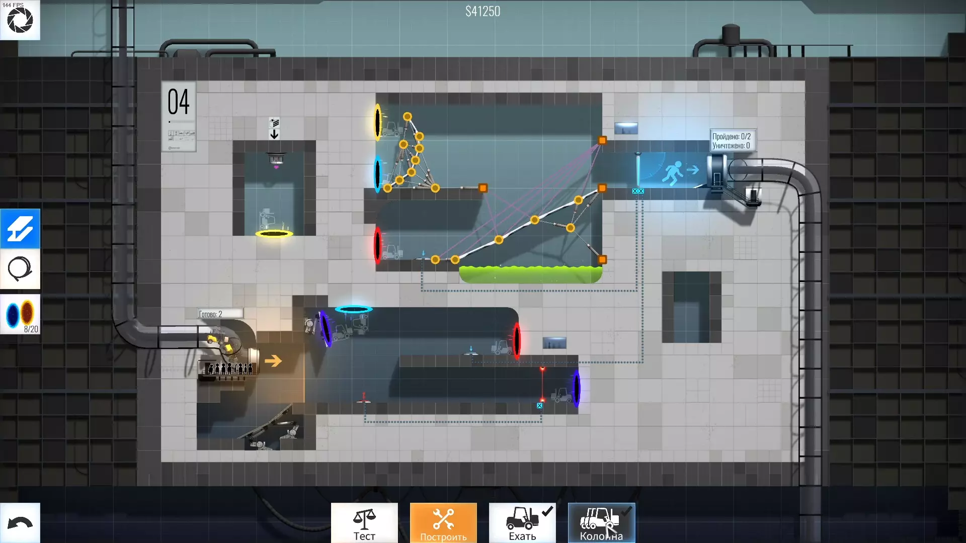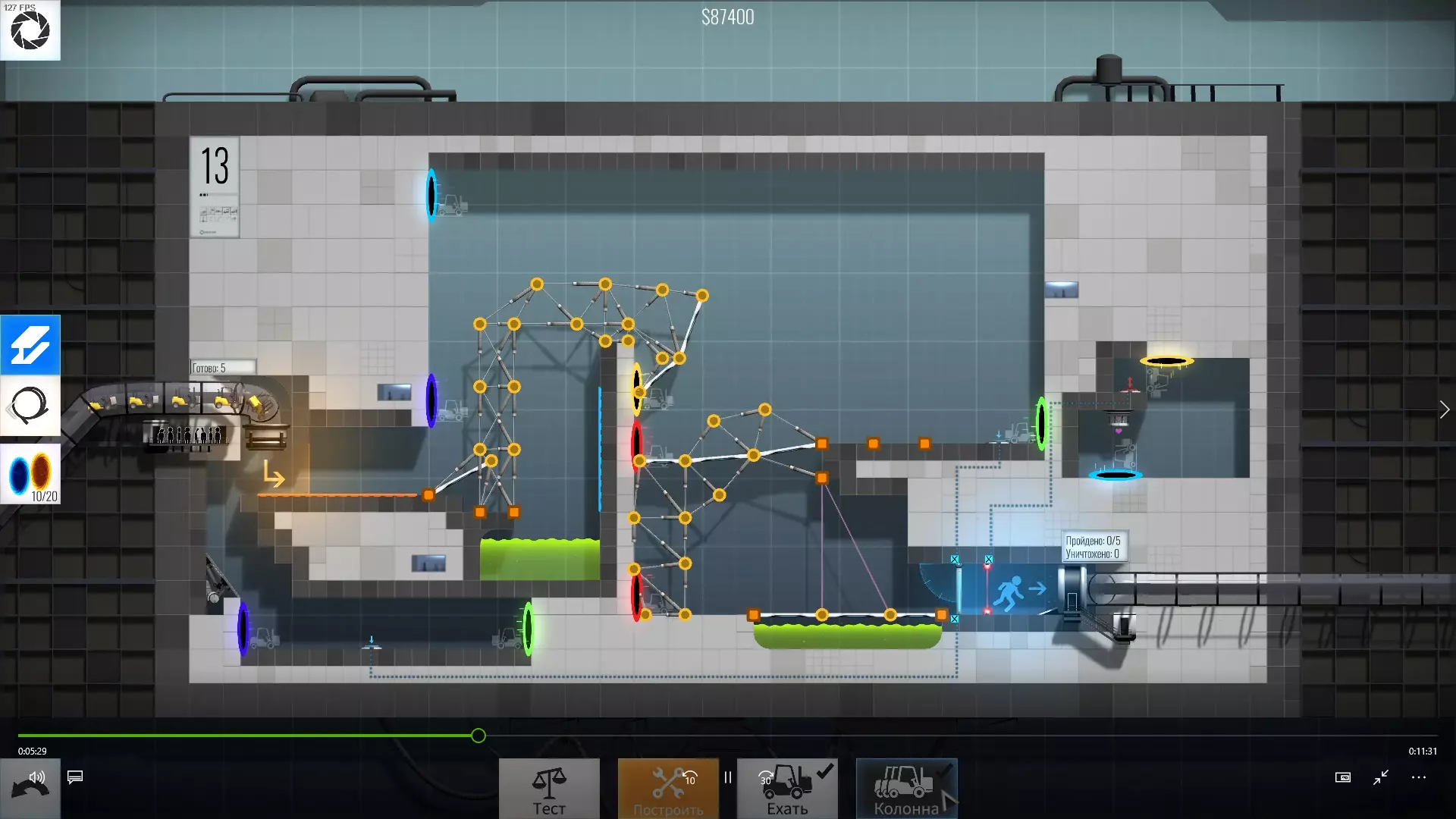 完成游戏本体及所有DLC的全部关卡。 一些说明 本指南将展示我个人设计的最终桥梁,借助这些桥梁我成功达成了游戏100%完成度,并进入了前3%玩家行列。 所有桥梁均为我在游戏过程中亲自设计和开发。我没有查阅过任何攻略,也没有看过任何通关视频,所以有些桥梁的设计看起来可能很奇怪,还有些关卡我感觉自己的玩法和开发者的初衷完全不一样。此外,在指南开头我附上了一段视频,直观展示了所有关卡,并证实我的桥梁能够通过关卡,包括带有立柱的情况。本指南和我并不鼓励大家尝试建造完全相同的桥梁,这份指南更多是为了让你在某个关卡卡住或不知道如何通过时,能找到思考方向。攻略 主线游戏 1 关卡难度:简单