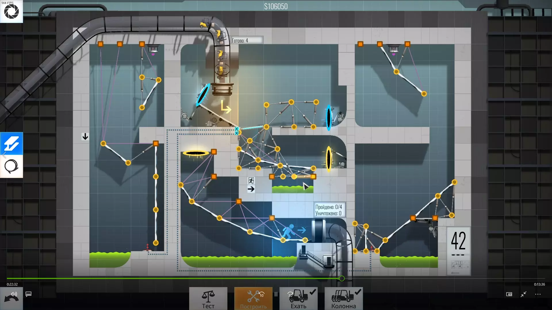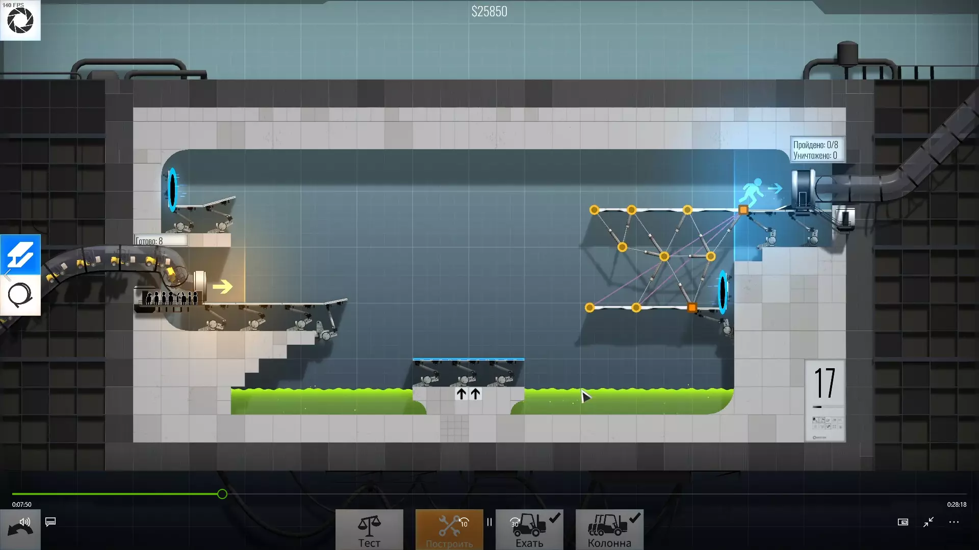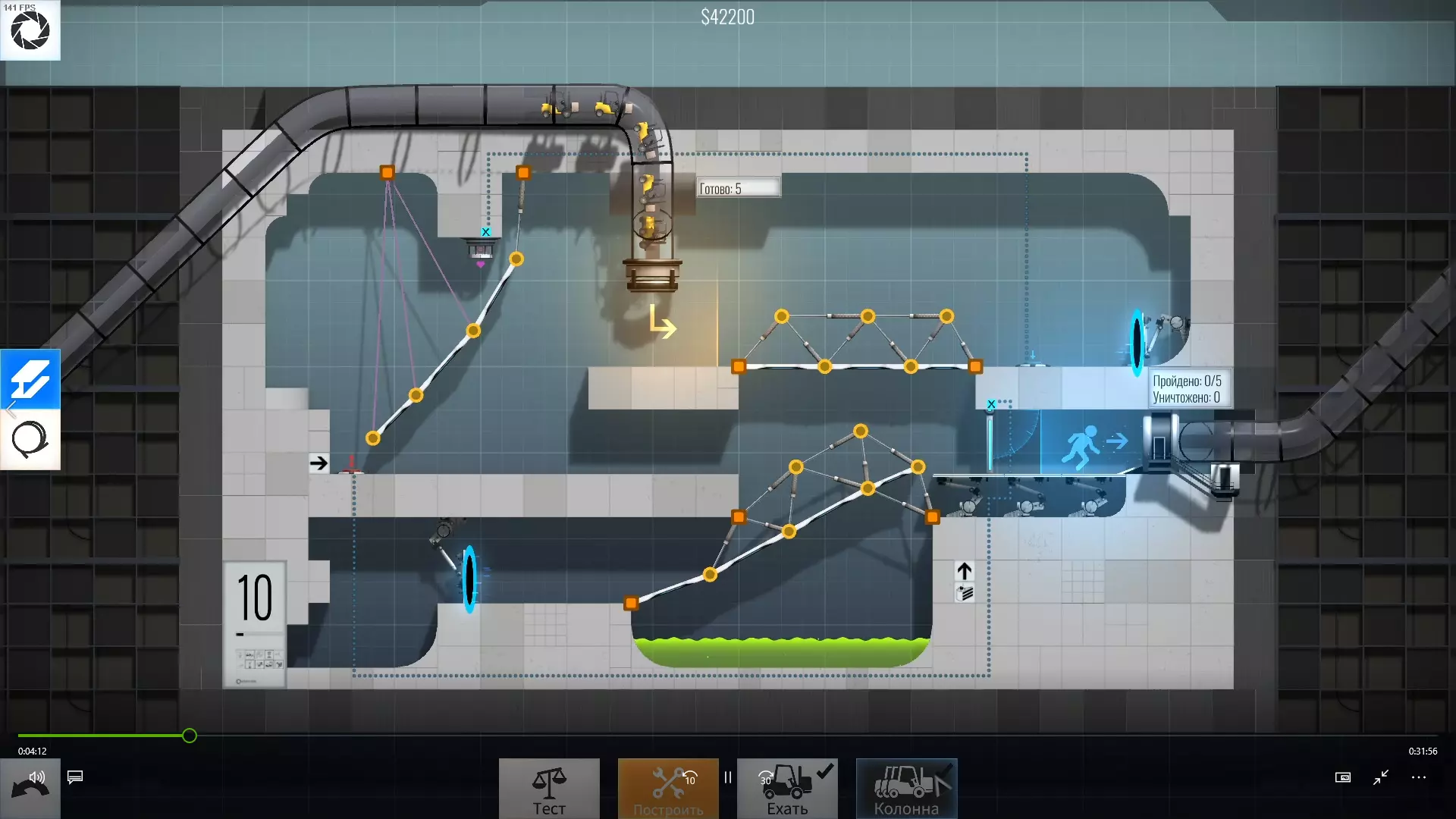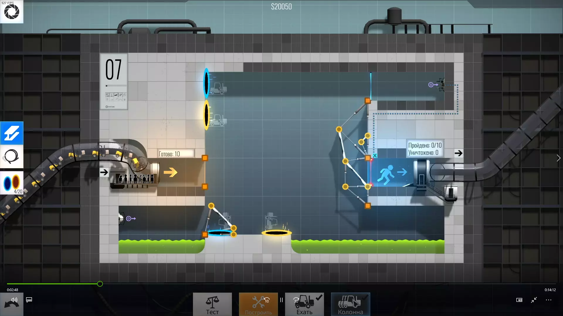 完成游戏本体及所有DLC的全部关卡。 一些说明 本指南将展示我个人设计的最终桥梁,借助这些桥梁我成功达成了游戏100%完成度,并进入了前3%玩家行列。 所有桥梁均为我在游戏过程中亲自设计和开发。我没有查阅过任何攻略,也没有看过任何通关视频,所以有些桥梁的设计看起来可能很奇怪,还有些关卡我感觉自己的玩法和开发者的初衷完全不一样。此外,在指南开头我附上了一段视频,直观展示了所有关卡,并证实我的桥梁能够通过关卡,包括带有立柱的情况。本指南和我并不鼓励大家尝试建造完全相同的桥梁,这份指南更多是为了让你在某个关卡卡住或不知道如何通过时,能找到思考方向。攻略 主线游戏 1 关卡难度:简单