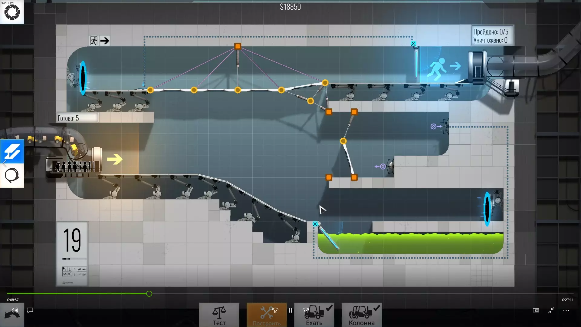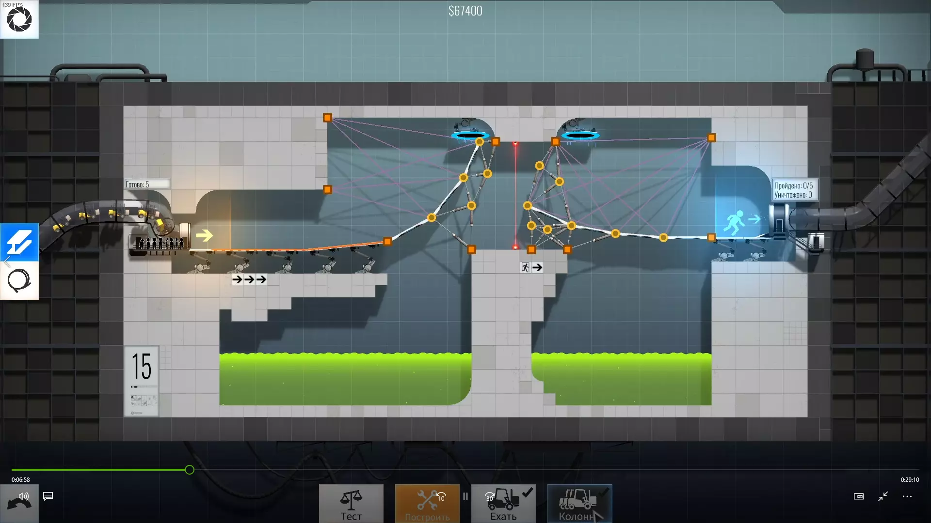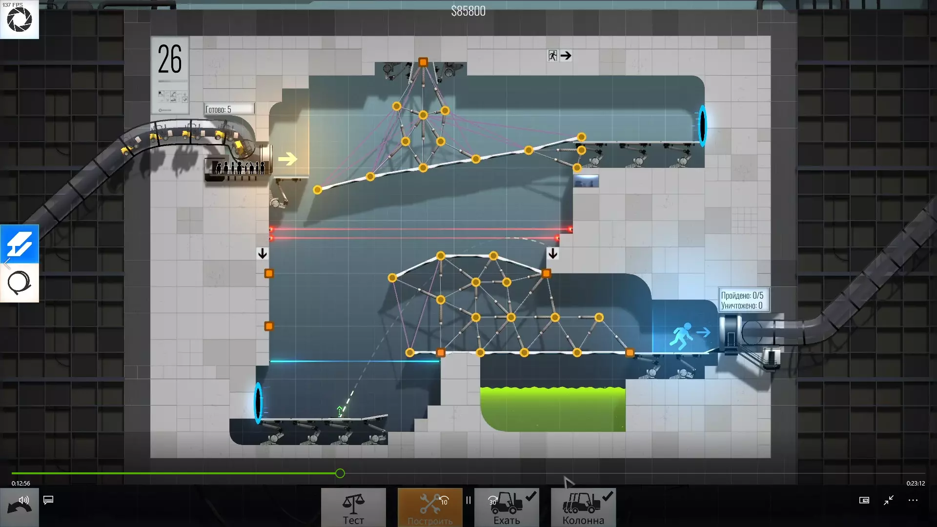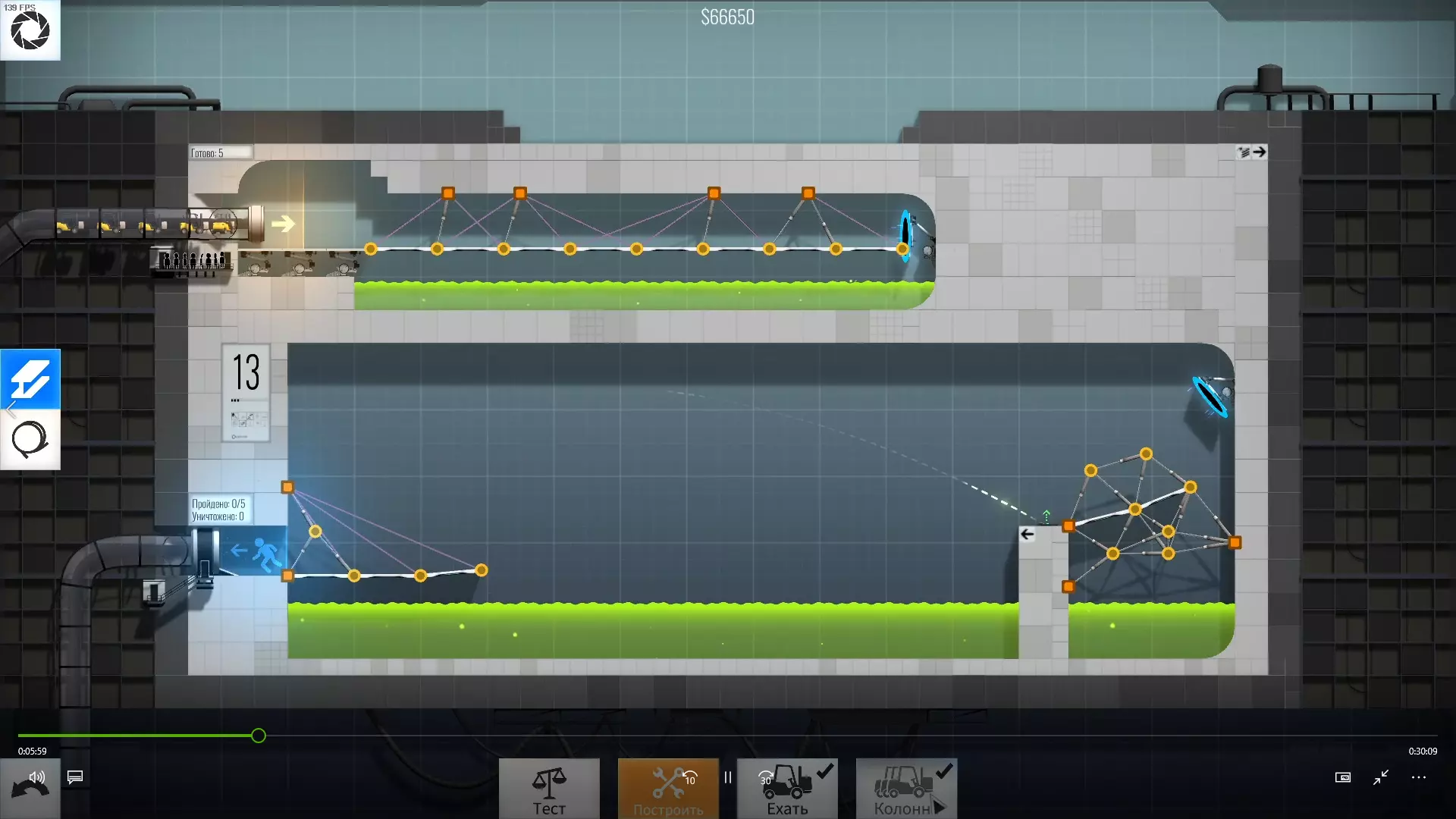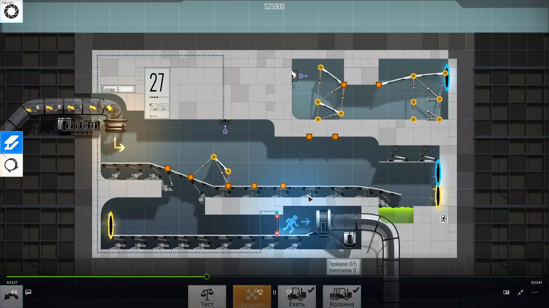 完成游戏本体及所有DLC的全部关卡。 一些说明 本指南将展示我个人设计的最终桥梁,借助这些桥梁我成功达成了游戏100%完成度,并进入了前3%玩家行列。 所有桥梁均为我在游戏过程中亲自设计和开发。我没有查阅过任何攻略,也没有看过任何通关视频,所以有些桥梁的设计看起来可能很奇怪,还有些关卡我感觉自己的玩法和开发者的初衷完全不一样。此外,在指南开头我附上了一段视频,直观展示了所有关卡,并证实我的桥梁能够通过关卡,包括带有立柱的情况。本指南和我并不鼓励大家尝试建造完全相同的桥梁,这份指南更多是为了让你在某个关卡卡住或不知道如何通过时,能找到思考方向。攻略 主线游戏 1 关卡难度:简单