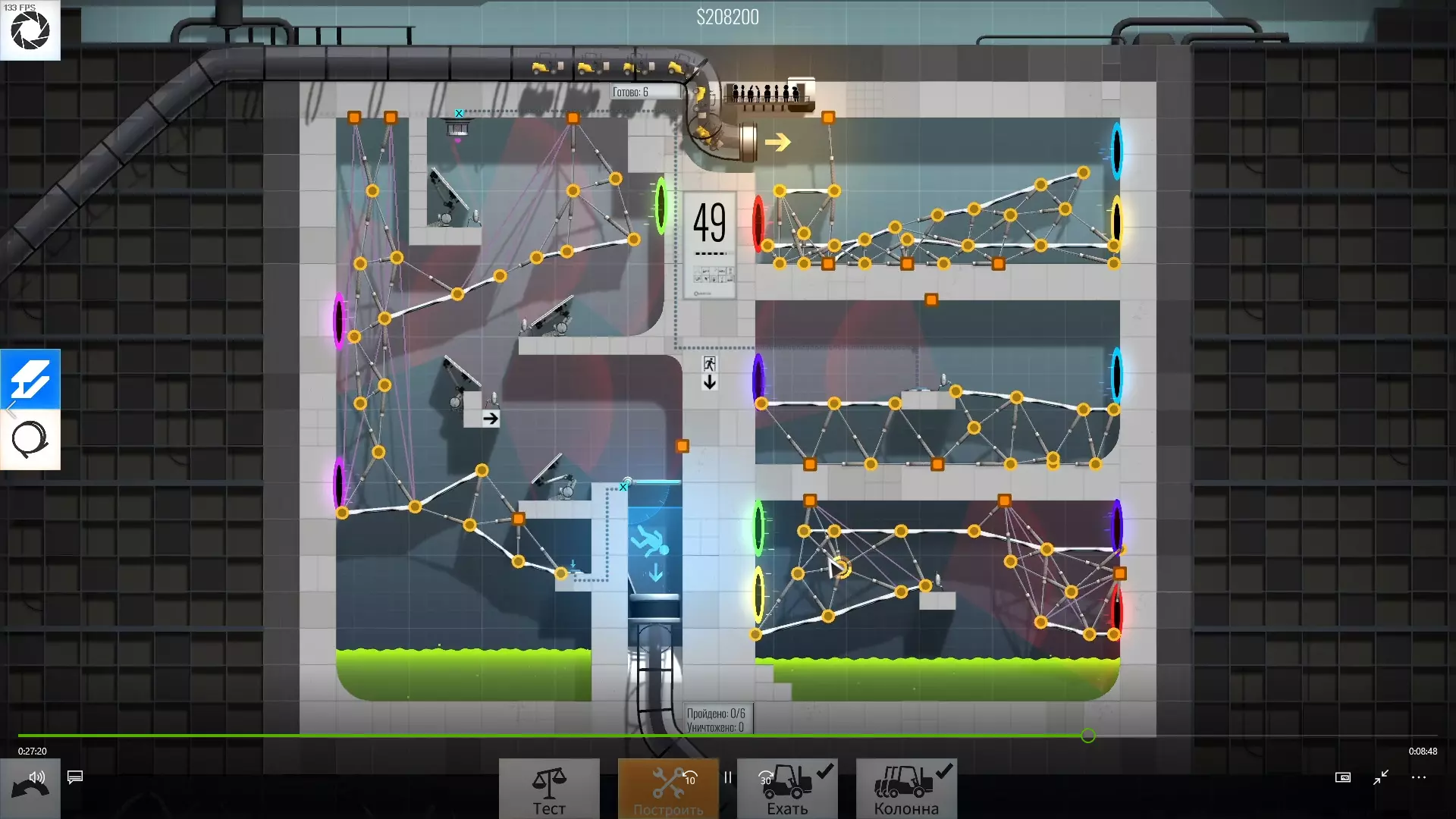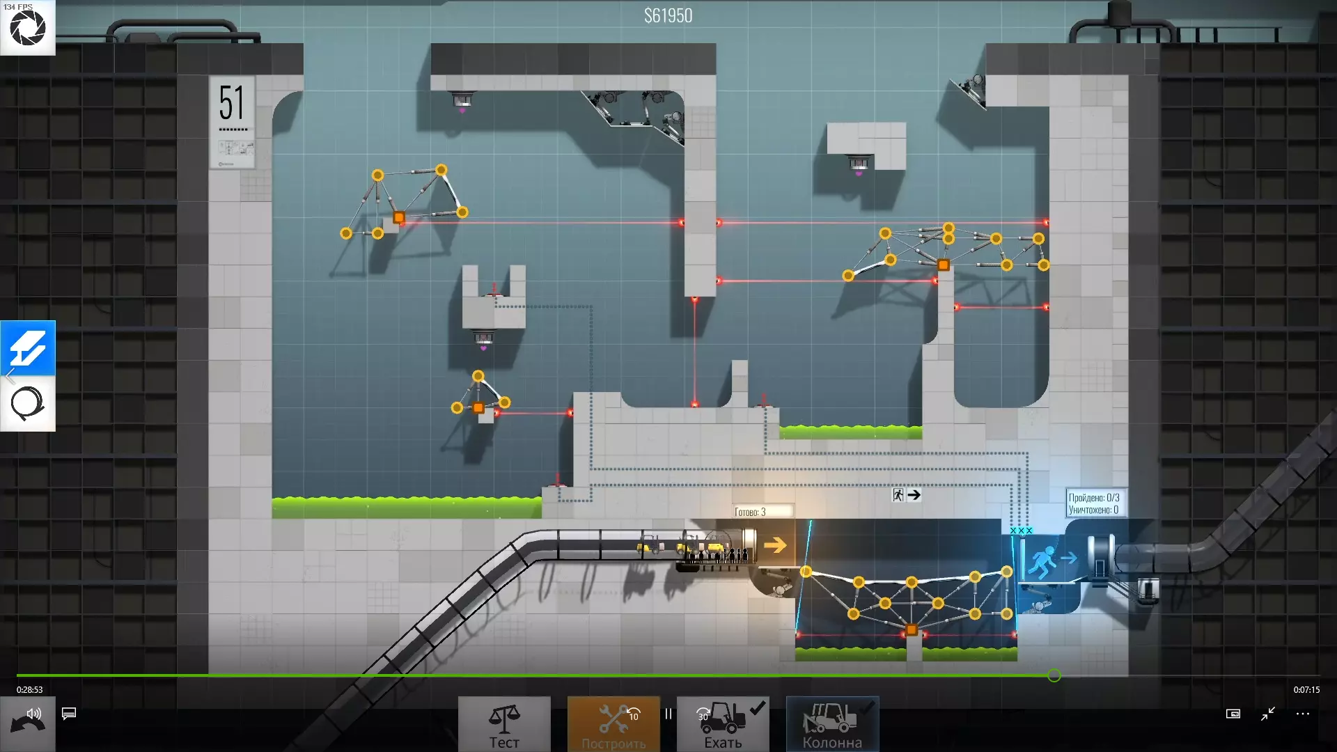 52级 难度:困难 这可能是少数几个主要问题确实在于桥梁总是损坏的关卡之一。