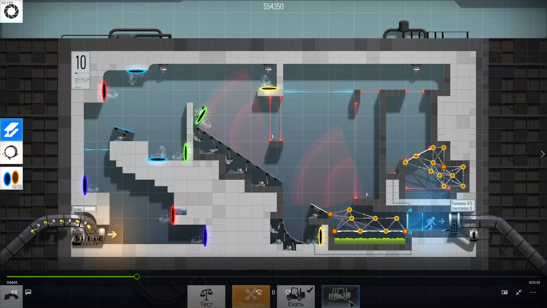 45级 难度:简单-中等 我一开始没发现原来上面也有炮塔,所以试着从下面把球通过传送门送过去,如你所见,成功了。之前球总是提前爆炸。要是我一开始就注意到上面有炮塔,这关就简单多了。