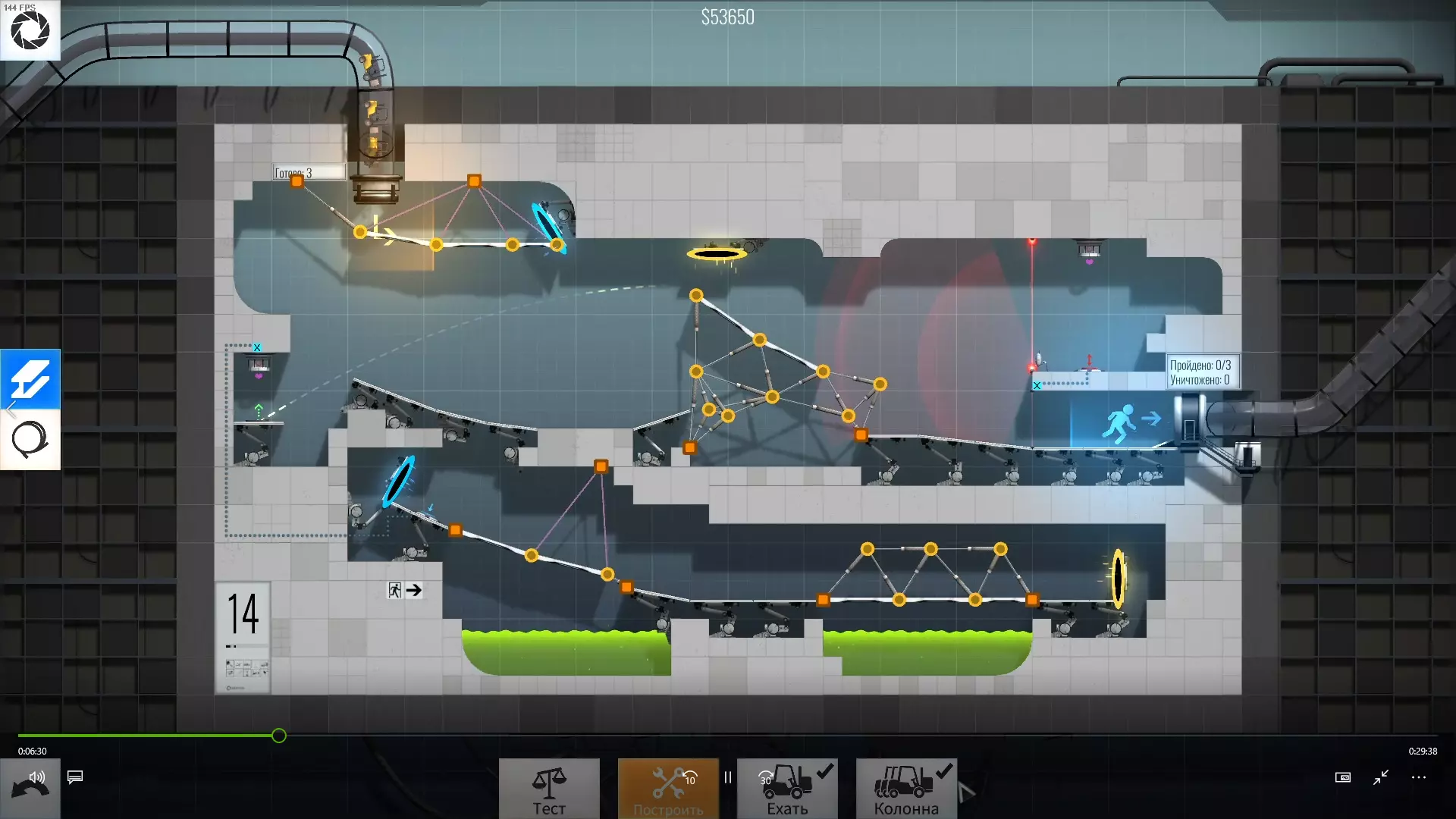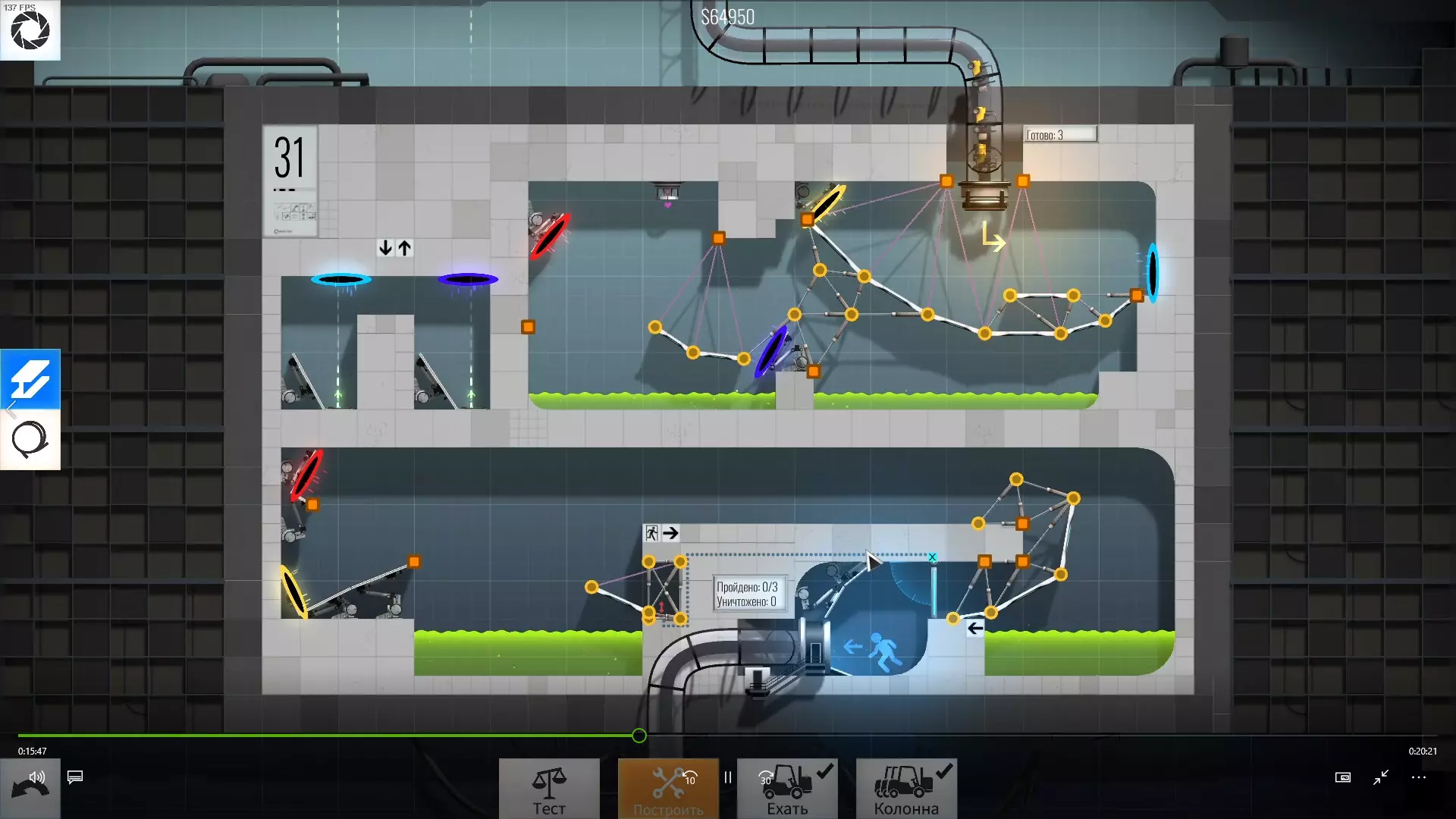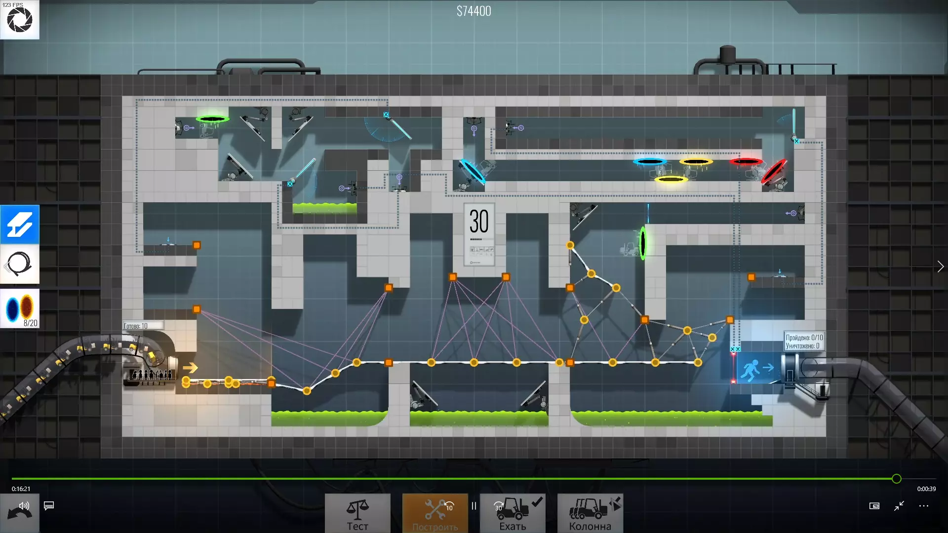 30级 难度:中等-困难 为左右球体选择角度和传送门花费了不少时间,不过这个关卡本身不算特别难