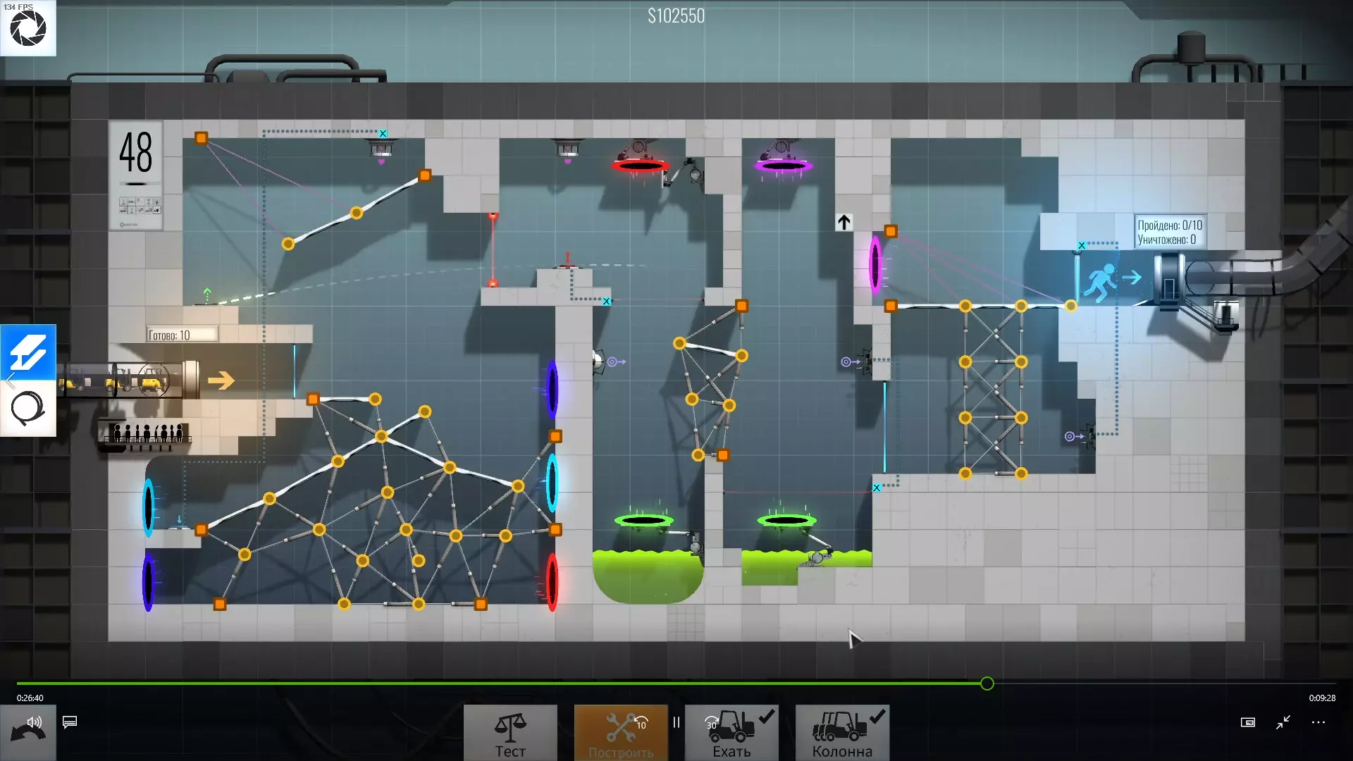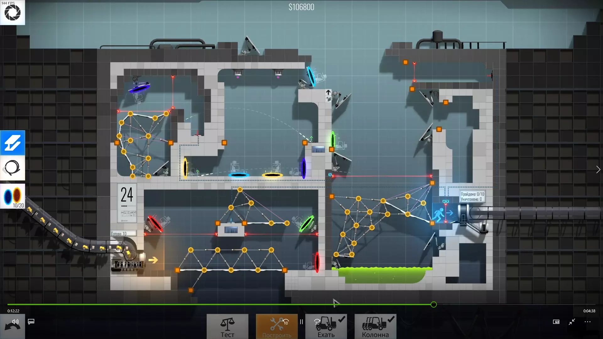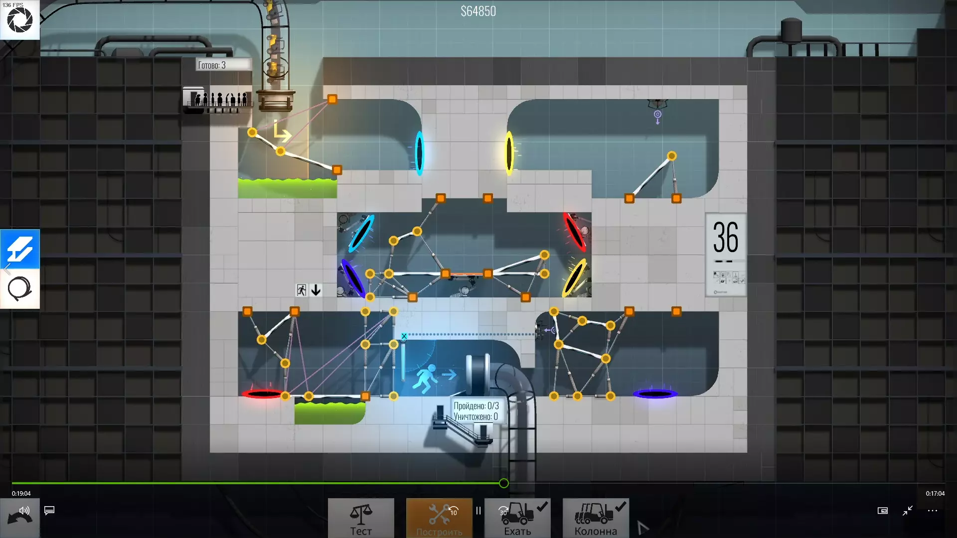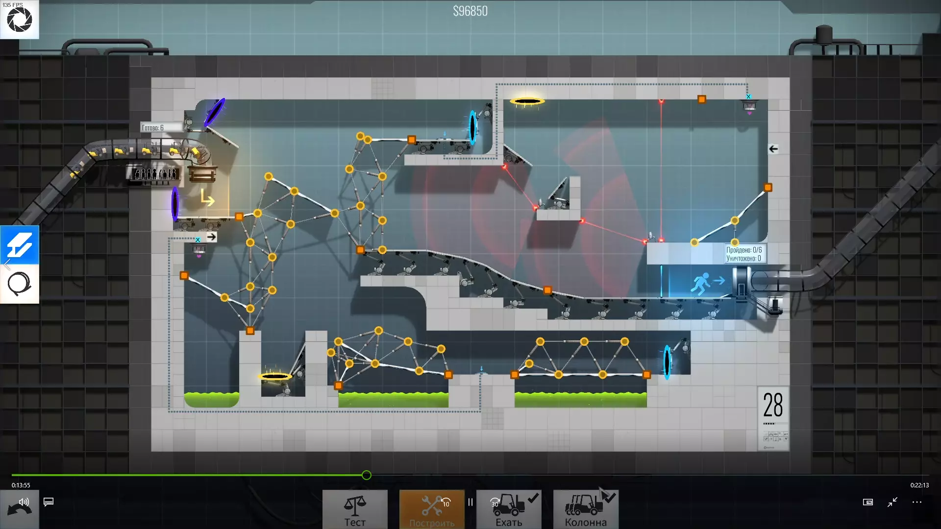 30级 难度:中等-困难 为左右球体选择角度和传送门花费了不少时间,不过这个关卡本身不算特别难