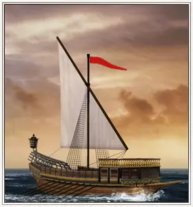 火箭船 这是你在战役中可以使用的第二艘也是最后一艘火炮舰,它看起来像一艘双桅横帆船,船头装有火箭武器,可向敌方船只发射一连串燃烧的爆炸性火箭(同样是从船头发射)。这艘船拥有超远射程和更大的伤害潜力,能让海面燃起熊熊大火。不过,它和炸弹船一样脆弱。 船员:42 火炮:14 火力:13 射程:47 精度:50 装填速度:60 船体强度:35 航速:11 机动性:76 15 非常低 提示 火箭船过于强力。强到离谱。一轮齐射很可能直接摧毁一艘船,至少也会对敌舰的船帆造成巨大伤害,常常会将船帆完全烧毁,使船只无法移动。贸易船 贸易船的特殊之处在于,它们是唯一能够利用贸易节点的船只——贸易区域中【黄色标记】的贸易节点,能为控制它们的派系提供特殊贸易商品的获取途径。 《帝国:全面战争》中有4种贸易船,所有贸易船均为互斥类型。