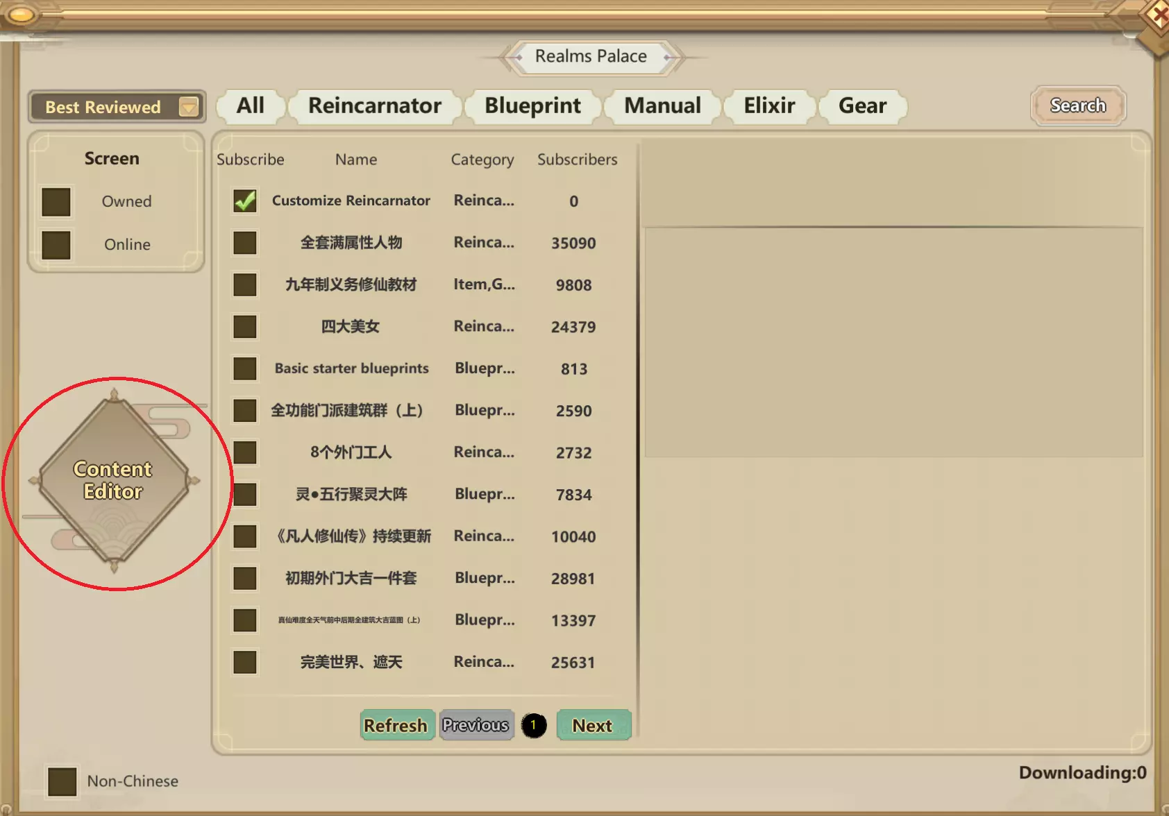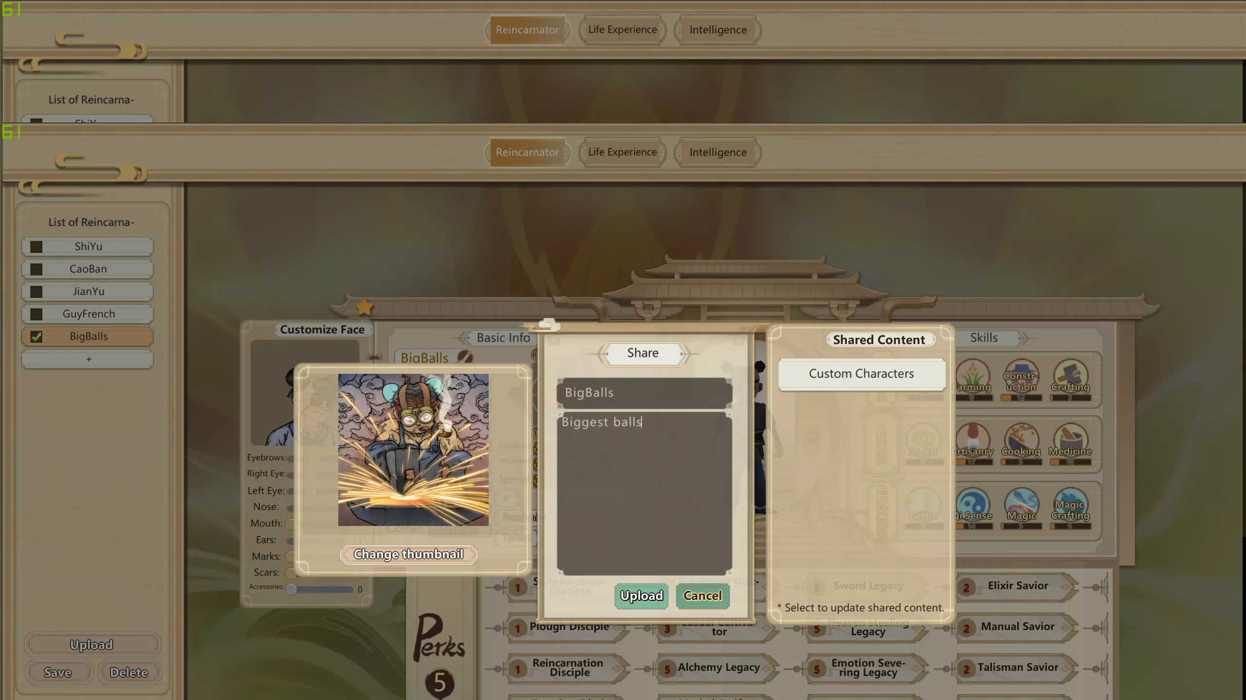 游戏内模组工具! 在此区域,你可以在游戏中创建任何想要添加的内容,但如果你想进行角色自定义,请点击【转世】。