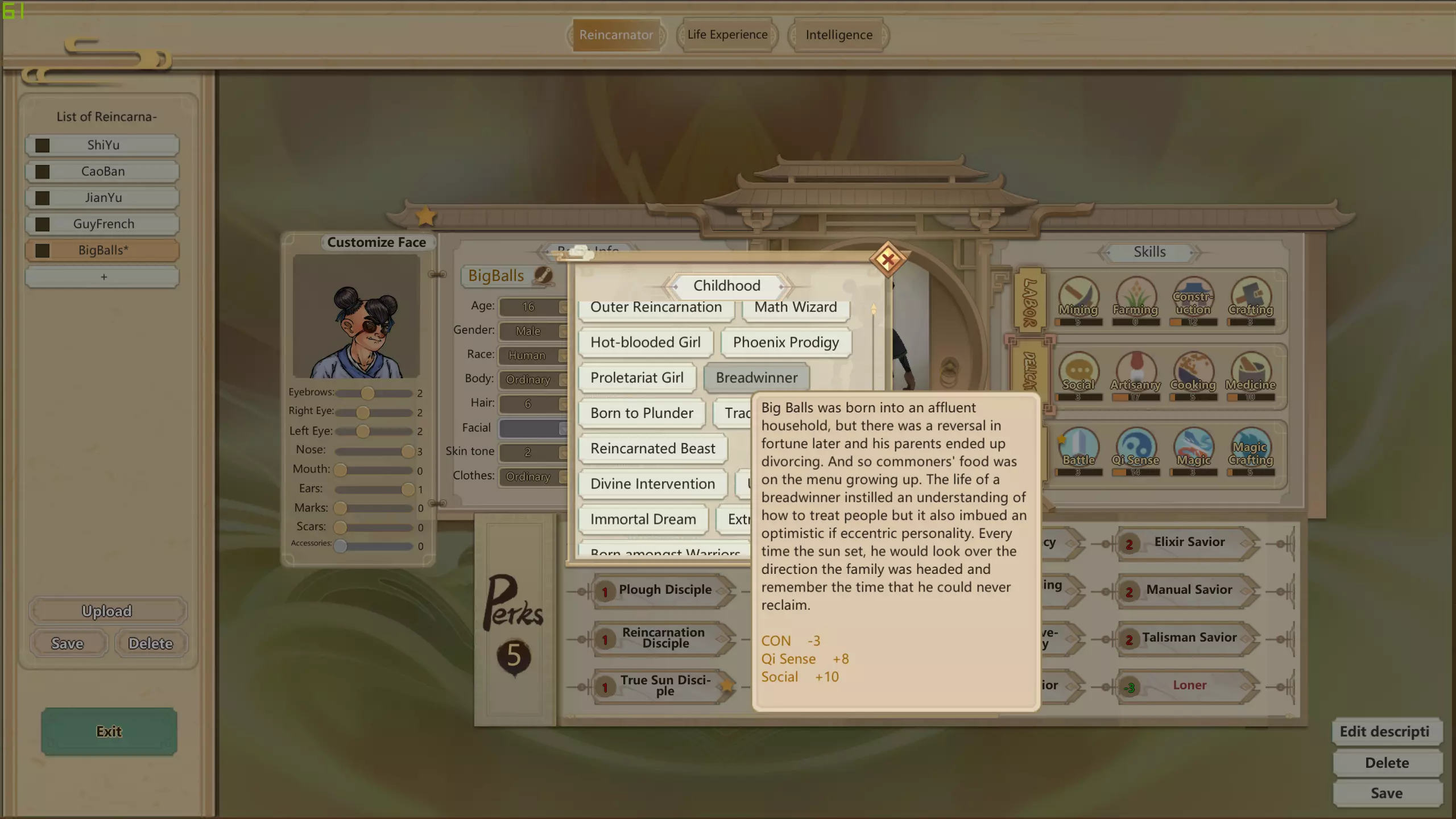 属性和技能会根据角色在童年和成年时期的经历进行调整。创建属于你的童年和成年时期!通过自定义,你可以将角色培养成任何你想要的强度!