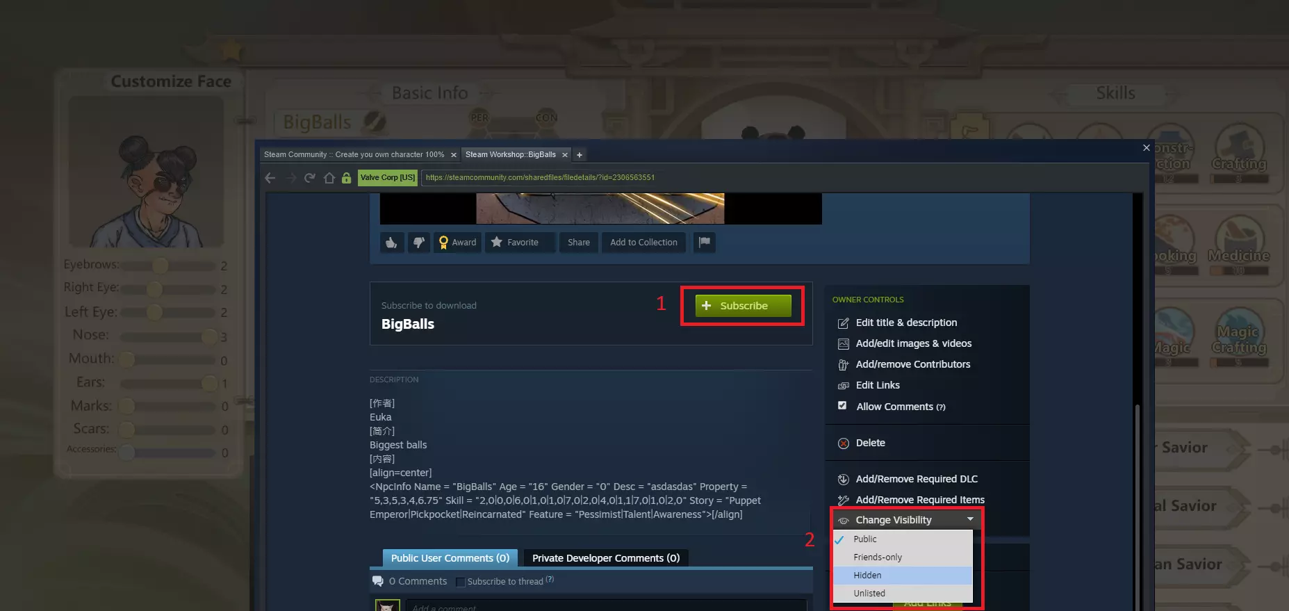 订阅与隐私 1. 订阅你创建的角色! 2. 选择是否将其公开供他人查看,或设为仅个人使用的私密内容!