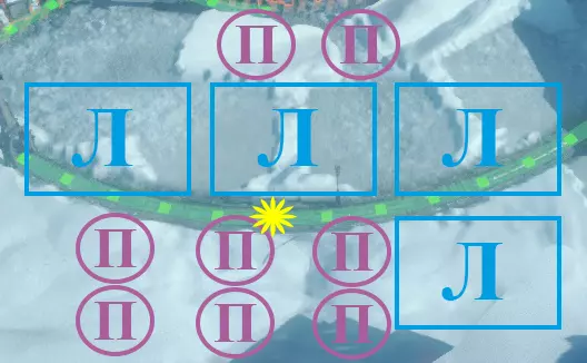 星星 - 熔炉1号。 П - 帐篷。 热力区域2号布局图: