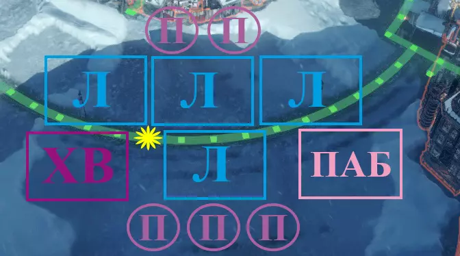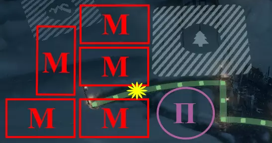 - 蒸汽中心3号。 М - 工坊。 П - 帐篷。属于任务1,但标注出来是为了更清晰。 附:工坊不会影响前哨站,此为示意图的简化设定。 热力区域4号(TZ4)布局图: