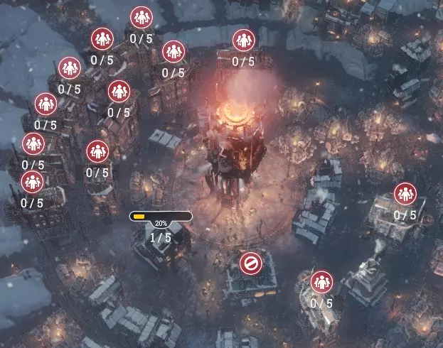 基本数据 持续时间:26天。 困难难度温度: 降低:5日、7日、14日、15日、21日(-2)、25日(-2)。 升高:4日、10日、18日、24日(+2)。 生存难度温度: 降低:6日、13日、15日、17日、21日(-2)、25日(-2)。 升高:10日、18日(+2)、24日(+2)。 发电机:立即开启1级并使用过载。否则会有太多病人。尽可能使用过载,然后升至2级。在建立煤炭经济之前,交替使用过载和升级发电机等级。疾病:尽管初期患者数量众多,但10个卫生站完全能够应对。我们不使用传染病院。第一项法律——激进治疗,如果不学这项法律,重症患者将会死亡。 希望:本剧本的主要难点是在第11天前将希望值提升至50%。因此,必须兑现所有承诺,不通过降低希望值的法律,同时及时从废墟下救出幸存者。拒绝食物请求,因为受游戏机制限制,我们无法及时提供食物。 选择【目标】:由于需要最大限度提高钢铁产量,我们选择走秩序路线。 地图探索:只需一个侦察兵小队,无需提升速度。首先探索气象站(北方),因为我们已知天气预报,带领工程师前往城市。接下来沿着气象站的路线探索所有区域。将自动机械留在桥上,以便未来能够建立钢铁前哨站。最后护送洞穴中的科学家前往城市。根据玩家galaktys的描述,将学者留在洞穴中没有意义:如果你在第25或26天前没有建造3层建筑,且你的城市中有250人,他们似乎会开启另一个地点,那里有树木和铁矿,届时你可以选择获取资源,或者继续前往地平线上的烟雾处,他们似乎会到达新的住所。 接下来我们探索无畏舰路线(南方)。最后我们不冒险,只获取容易获得的资源。接下来是东部的雪域平原,最后是西部的积雪悬崖。最重要的是,完成任务线后,务必将侦察兵送回城市。 主要目标分为3个阶段: 1 阶段:在第11天前,需完成以下条件: 启动发电机 清理30处废墟 将希望值提升至50% 将不满值降低至25% 2 阶段:13日前需完成以下条件: - 研究维修站 - 建造维修站 - 调查故障原因 第三阶段分为多个步骤,持续至26日。第一阶段: 建造疏散中心 派遣25名工程师到无畏舰 第二阶段: 向无畏舰运送钢材用于外壳建造 - 300 向无畏舰运送食品配给 - 250 向无畏舰运送蒸汽核心 - 1 第三阶段: 向无畏舰运送煤炭 - 5000 向无畏舰运送人员 - 500 向无畏舰运送食品配给 - 5000 将甲板改造为舱室 - 5