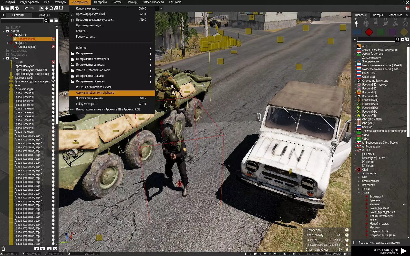2. 启动【武装突袭3】并选择要创建场景的地图 3. 创建场景。操作步骤如下: 3.1. 仔细研究原始照片或明确构思你设想的场景外观 3.2. 选择创建场景所需的物品 3.3. 结合比例布置场景