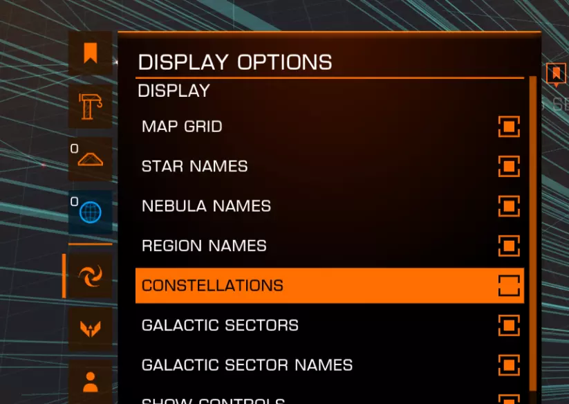 我查看了游戏中星系图里的所有星座,并列出了此功能所标记的恒星系统。 如何自行查看星座: 通过外部面板打开星系图。