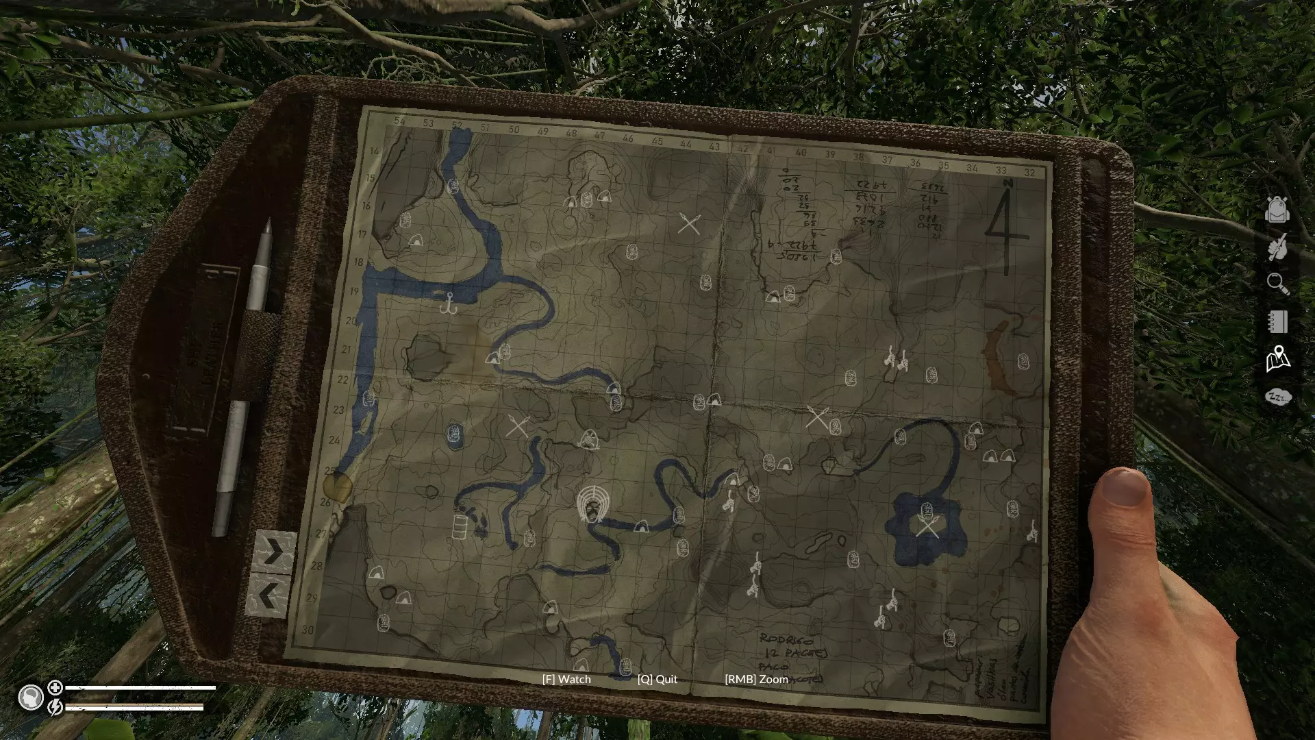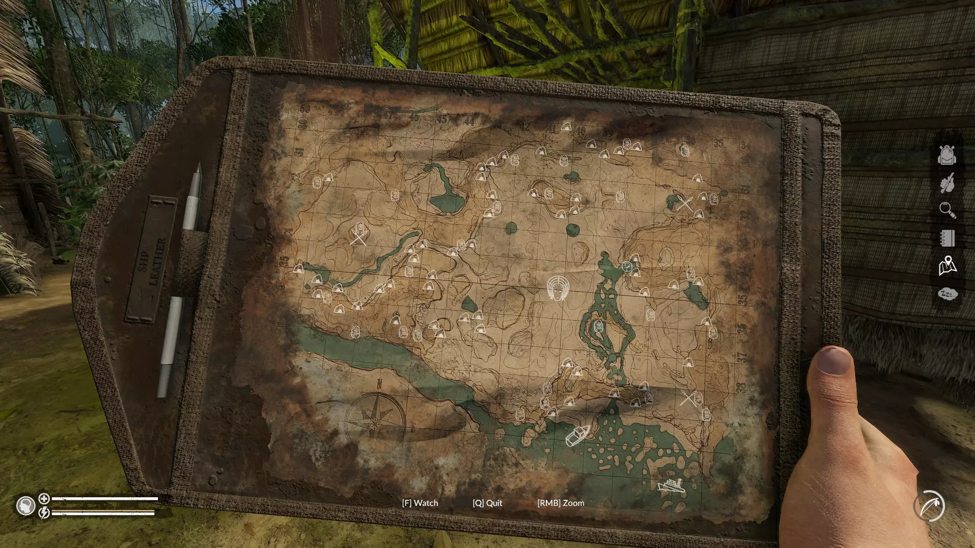 Include everything you need to know, curated with all of my experience and obscure tips and tricks. Now with an entire walkthrough for Spirit of Amazonia up to the ending Whats New? It sounds like I'm supposed to write changelog here, but instead I'll just use it to explain the new contents and tips for the recent update. Spirit of Amazonia Part 3 aaaand Animal Husbandry. Oh man I have been missing out on a lot New things from the update Blowdart Animal Enclosures Animal Taming Ability to Pet Creepy Jar adopted a Capybara Survival 101: How to not Die & other useful Tips Early Survival Tips Make an axe as soon as you start the game (1 rock + 1 wood stick) Easy Firestarter recipe: 2 stick + 2 rope Build a shelter as soon as you found a clearing, it is the only way to save your game Don't drink dirty water unless you have spare cuppy/soursoup to counteract the parasite. It's not lethal but it can get annoying when you're running around looking for cure. Leave out coconut halves in the open so when it rain, it will collect the rainwater (the rainwater is safe and drinkable) Use the compass and write down the coordinate of your base so that you can find your way back to your base. General Tips You can harvest a large rock for smaller rocks by right clicking it for more option Large item that can't be put into inventory can be put for crafting either by dragging from the ground it or right clicking it for more options The magnifying glass on your status bar shows that there are unresolved diseases and wound on your body, it is very useful on telling you that there are leeches in your body If something leads to your death, don't do it again Manage your sanity, keep it above by eating cooked meat, resting in shelter, and standing near a campfire Cut off plants (not banana or palm) and leave the leaves to dry off into usable tinder Don't throw away rotten food, there might be edible grubs that you can find by harvesting rotten food You're not a cow, don't eat leaves If it looks poisonous, it probably is (Congrats on having functional Instinct) Watch out for your sanity, Its don't starve tier and can actually spawn monster that will kill you Don't poke the wasp nest, instead throw rock or axe from a distance to collect those delicious honey. Someone pointed out that you can put up a torch to scare get them to buzz off (which actually works on ants too) If you get attacked by a jaguar, don't run (you'll just be out of stamina by the time it catches up) Instead challenge it by beating em with spear Green frog = good, Blue frog = bad. Seriously, not ♥♥♥♥*ng worth it, avoid these guys if pos You get ash and charcoal from burnt out campfire. Ash can be used to make a high quality bandage, while charcoal can be eaten to filter out food poisoning or be made into a water filter. Medium shelters can only save and demands you to build a bed afterward, but the smaller shelter are not only easier to craft, it provides a little bit of both. The shelter quality are related to chances of getting a disease when you sleep. Roasted Meat restore sanity and energy when eaten, you can eat as many and hunt as many to fill up your sanity meter Cheapest way to raise your sanity up is to hunt/fish as many animal as you can (rattlesnake don't count) and roast their meat then eat them as each roasted meat adds 5 or more sanity and you need to have over 50 sanity to be considered sane If you are in a cave and hears a crackling sound, watch your step as there may be a scorpion lurking Carbs will later become the hardest resource to manage as it will force you to move from camp to camp in order to find more of this nutrient As you do things such as chopping wood or throwing spear, your skill increases and its progress can be seen in the notebook. Your skill will decides how fast, strong, accurate, or durable your equipment will become There is weights now, watch out for when carrying meat from large critters, because each piece weights around 4Kg. Thankfully your main character must be a veteran marine because he can carry 50Kg of weight everywhere he goes Armor specifically reduce chances getting bled when attacked and reduce some percentage of damage directly. Better armor will eventually becomes superior when your crafting skill is high, try to use simple ones first like a stick/bone armor, then work up to armadillo/iron Spear are powerful and can be thrown quicker than a bow. But bow have more ammo that you can bring with you. Iron tool exist. You can start by looking for iron ore in most caves and smash that mf veins till it drops some iron ores. One thing to know is that quality tool only scales up the durability (not efficiency) you should only start using steel You can get dirty, right click on river to open option to wash yourself. If you eat while dirty, you might get ill. Also clean yourself again after removing the dirt cause you actually have an additional hidden dirtiness value which are basically an extra layer of protection against dirt Charcoal Oven will let you make lots of charcoal (for the forge), you just have to fill in as many wood sticks into the kiln as you could and then start it up. If you need ash for mudworks or bandages, try harvesting charcoal for ashes. You get much more charcoal per campfire.GalleryGreen Hell's Safe Valley with its coordinate. Tribals doesn't normally spawn here, unless you left your base without extinguishing your fire.