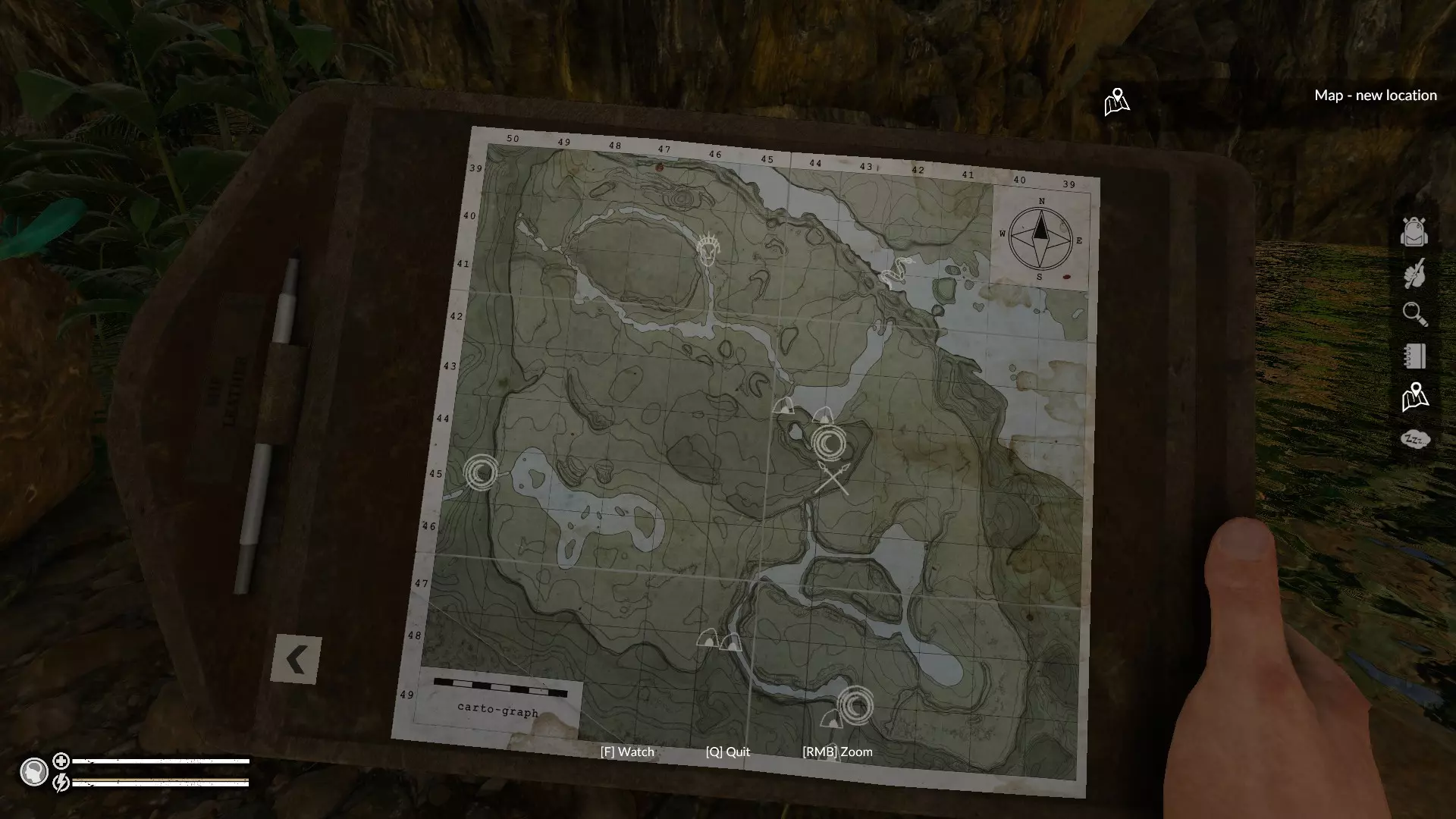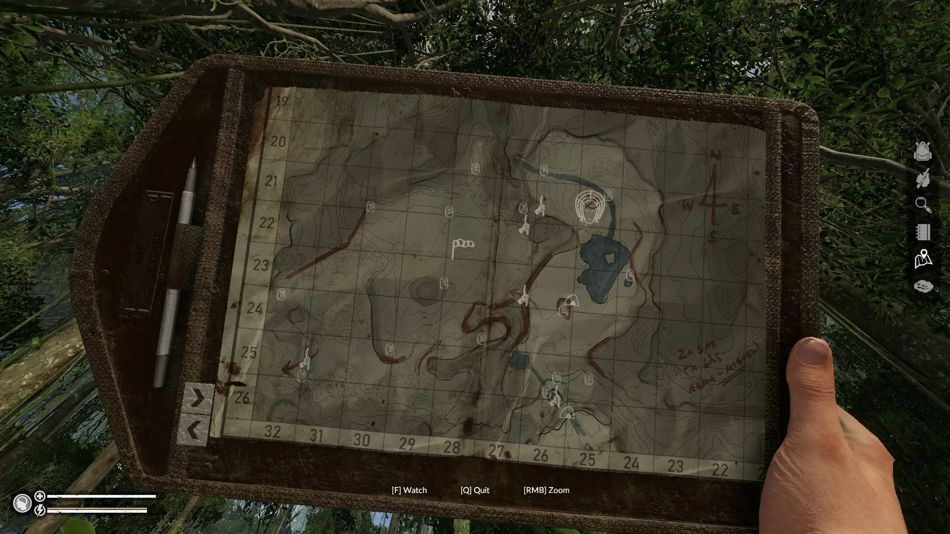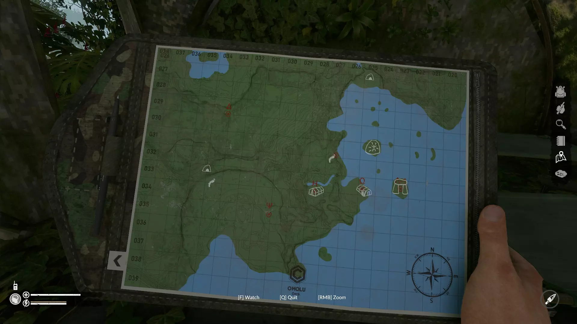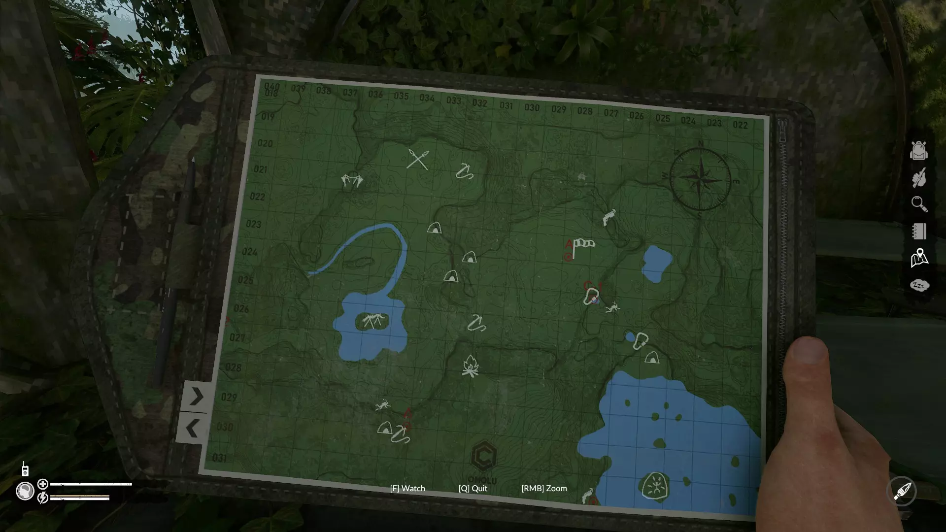 重要物品 鱼竿(水蚺营地) 攀爬工具(带风向袋的标记) 故事地点:欧米茄营地(25西;33南)
