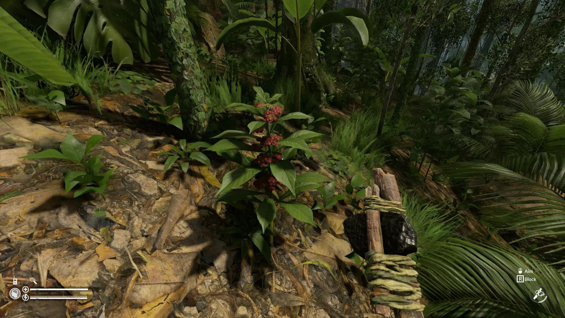 Anthropologist Guide to the Indigenous people of Amazon General Tactics Follow these easy* steps and you will win any fight 1. Hit (with spear or axe) 2. Immediately put up your block with "R" 3. Repeat the steps *it's not as easy as it sounds and you will probably fumble on your first tries Combat Tips! BLOCK! You won't win any combat if you don't know blocking (less you play as stealth archer) Tribals no longer invade your house unless you left a campfire lit while going away or sleeping. Note that the fire based spawn only happen if you leave your camp while a fire is lit. The tribal will not spawn this way if you attend to your camp. You can't never befriend any of the tribals (you're not playing the Forest) yet so feel free to go Columbus on them If a tribal sees you and runs away, you better chase after him or he will return to your base in group Use spear to fight off tribal, other weapon will risk you getting in their knife range Take distance between melee tribal, their knife is short but you're more likely to die from bleeding because bandages are rare and banana leaf bandage from the trailer isn't implemented yet Avoid sprinting toward them because it can waste your stamina too early, use your stamina to dodge, block, or attack them Don't charge at tribal if they are also charging, charge is effective on archers since they cant fight back at melee and when they swap their weapon, use this opportunity to shank them DONT FU*KING EAT HUMAN MEAT OR EVEN STEW IT. IT WILL INSTANTLY PUT DOWN YOUR SANITY (the bone is alright tho) You can safelty kill tribals from distance without even provoking them using bow and arrows which are easy to craft, but you cannot do it with low stamina since drawing bow without skill will take at least half of your stamina. Headshots can kill them in one hit even at low skill Obsidian Spear has the highest damage and can kill tribals in four or less hit. When thrown, it is more than enough to bleed them out in seconds Blocking while backing off is the best defense from melee attack If you are good at first person archery, then try to snipe them for a headshot from afar when they are unaware. Tribal archer has significantly less health than melee warrior, they would give support to melee attackers but can accidentally hit and kill their friend if you angle your position just right Tribals will attack your base if they can't reach you so try to use this to your advantage Combat are much more focused on where you hit em. I managed to took down a tribal archer in one hit by shooting my arrow in their head A tribal may spawn with a spear, their weakness is strafing to the side just like archers and as always, try to anticipate their attack and time your block properly. Tribals sometimes imitates bird sounds, which should be very noticable by you. Possibly to alert their mates Crafting Notebook Includes current recipes and hidden ones. All recipe except for the tribal firestarter can be crafted without needing to be unlocked first, but the crafting skill will slowly unlock more recipes as it increase. Blades Stone Blade: Small Stone 2x Stick Blade: Small Stick 2x + Small Stone + Rope Bone Knife: Bone + Rope Obsidian Blade: Obsidian + Small Stone + RopeAxes Simple Stone Axe: Wood Stick + Small Stone, easy recipe but very unreliable, your very first axe Stone Axe: Wood Stick + Small Stone 2x + Rope, Second worst axe, What most veteran survival game player likely to craft on their first day Stone Pick Axe: Wood Stick + Stone blade + Rope, Cant cut for love, but can mine iron faster Blade Axe: Wood Stick + Stone blade 3x Bone Axe: Wood Stick + Bone 2x + Rope Obsidian Axe: Obsidian + Wood Stick + RopeSpears Weak Spear: Long Stick Stone Spear: Long Stick + Stone blade + Rope Bone Spear: Long Stick + Bone + Rope Obsidian Spear: Obsidian + Long Stick + Rope Four Pronged Spear: Long Stick + Small Stick 2x + Rope Four Pronged Bamboo Spear: Long Bamboo Stick + Small Stick 2x + Rope Bamboo Spear: BambooOther Weapon & Tools Coconut bidon (canteen): Drinkable Coconut + Rope Bow: Long stick + Rope Bamboo Bow: Long Bamboo Stick + Rope Arrow: 2 Feathers + Small stick Weak Torch: Wood Stick + Rope Torch: Wood Stick + Rope + Tree Resin (from white petrified tree) Firestarters Hand Drill: Wood Stick + Small Stick Hand Drill (Plank): Wood Plank + Small Stick Bow Drill: Wood Plank + Bow + Small Stick + Rock Tribal Firestarter: Wood Stick 2x + Rope 2x Armor Leaf Armor: 1 Banana Leaf + 2 Ropes Stick Armor: 1 Banana Leaf + 2 Ropes + 3 Wood Stick Bamboo Stick Armor: 1 Banana Leaf + 2 Ropes + 3 Bamboo Stick Bone Armor: 1 Banana Leaf + 2 Ropes + 3 Bones Armadillo Armor: 1 Banana Leaf + 2 Ropes + 1 Armadillo ShellForging Empty Mold (3x): Harvest mud brick. Baked molds can then be harvested for the shaped items. Blade Mold: Mold + Melted Iron + Stone Blade Axe Mold: Mold + Melted Iron + Simple Stone Axe (Stone + Wood Stick) Arrow Mold: Mold + Melted Iron + Arrow Armor Mold: Mold + Melted Iron + Wood Stick Metal Blade: Blade Cast + Rope Metal Pickaxe: Metal Blade Cast + Rope + Wood Stick Metal Spear: Metal Blade Cast + Rope + Long Wood Stick Metal Arrow: Metal Arrowhead + Rope + Small Stick + 2 Feathers Metal Armor 3 Armor Plates + 2 Ropes + 1 Banana LeafMetalworking Tips! Used food cans can be substituted for metal ores Metalworking is only efficient at high crafting level, otherwise you will be wasting limited resource on a crudely made tool. Once the durability of your bone/stone axe stops increasing, that's when metal tools becomes viable.Fishing Fishing Rod: Long Stick/Long Bamboo + 2 Feathers + Rope + Brazillian Nut Shell Bone Fishing Hook: Bone Needle Fishbone Hook: Fish BoneBlowpipe (NEW!) Blowpipe: Bamboo Sticks + 2 Ropes Unfinished Darts: Bamboo Sticks + Fiber (harvest herbs) Poison Darts: *Capture live dart frog, place it on a frog stretcher , and drag the unfinished darts to the stretcher Medicines & Food Leaf Bandage: Molineria leaf Ash Dressing: Leaf Bandage + Ash from campfire