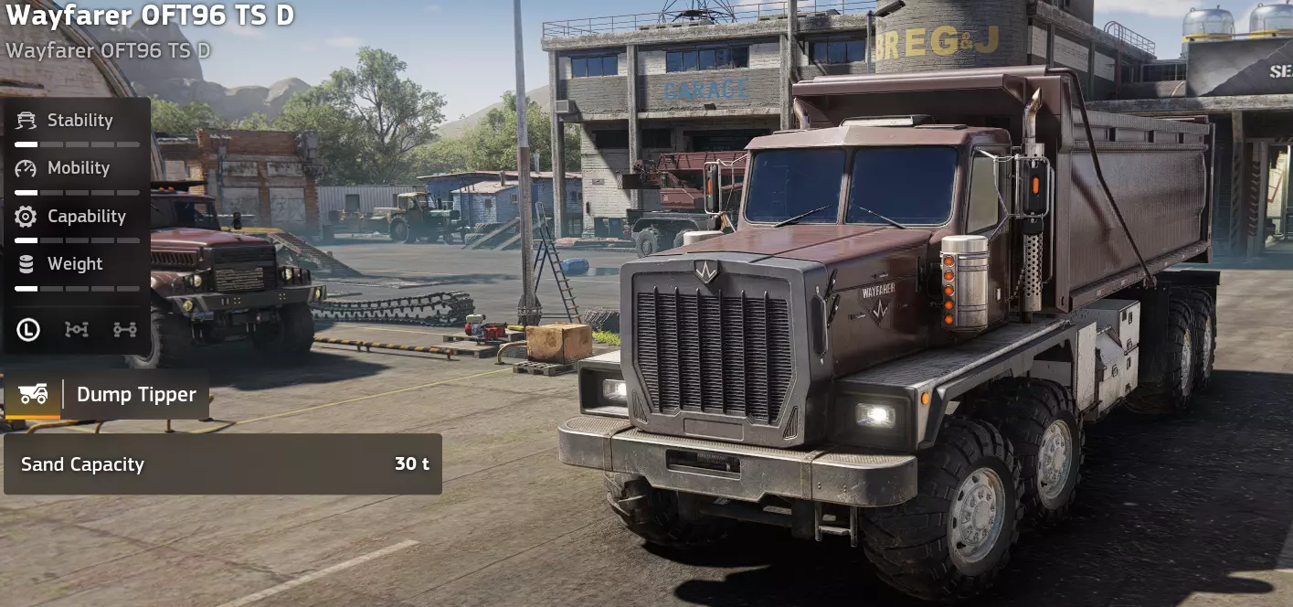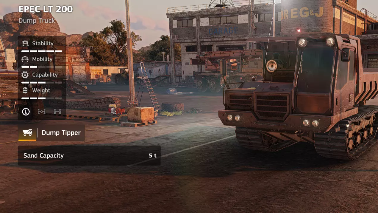 价格:42,000 解锁条件:公司等级12 备注:实在搞不懂。我得说五吨沙子比我原本想象的要多得多,但实际上花42,000买一辆性能上比泰加还要差的车,还是算了吧。 优点:履带式 缺点:容量最低(5吨)、离地间隙小、速度慢、道路施工(Arling Roadworks 120 Special)