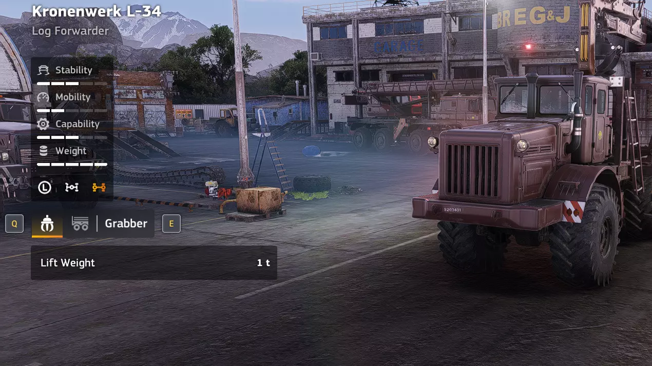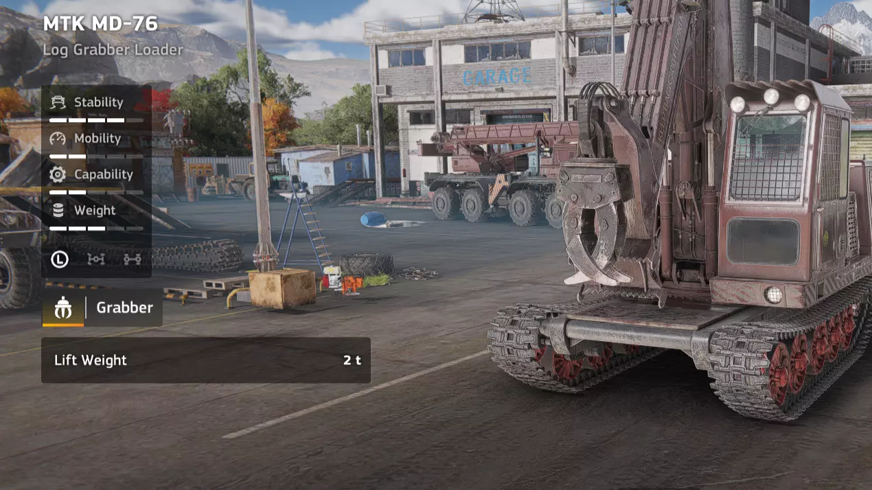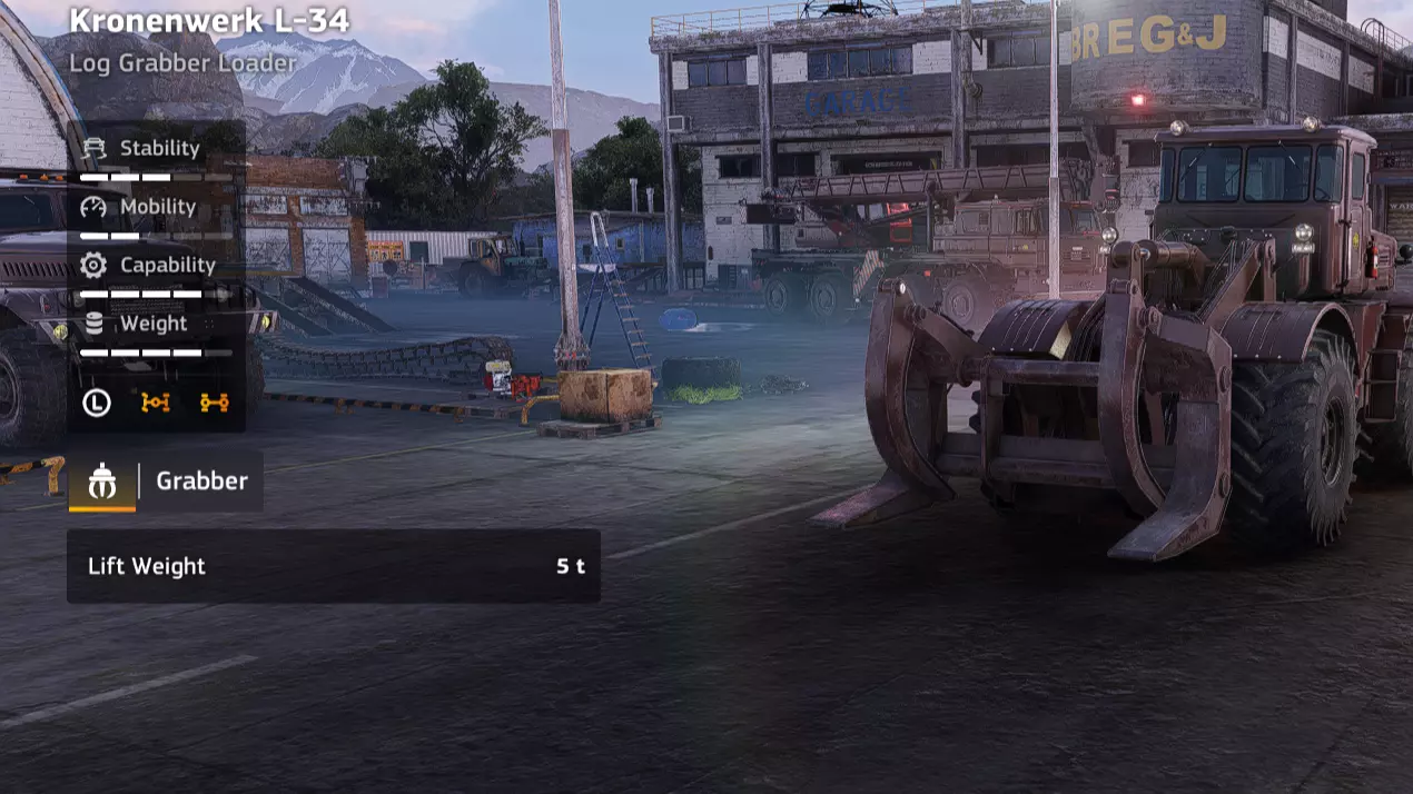 价格:24,000 解锁条件:【Incommunicado】 说明:在载货状态下,糟糕的转弯半径已经很烦人了,而当你试图在树桩、木柴堆和其他林业设备之间穿梭时,简直是种折磨。你也可以再存1000 credits购买Kronenwerk的集材机,它可能在泥泞路面的表现和稳定性上稍逊一筹,但至少你不用为了对准木材而进行20点转向。不过,如果你能忍受这极差的转向,该车辆在其他方面还是相当实用的。 优点: - 用途相当广泛 - 价格便宜 - 越野性能良好 - 耐超载 缺点: - 转弯半径极差 - 伐木作业(Kronenwerk L-34 *Loader)