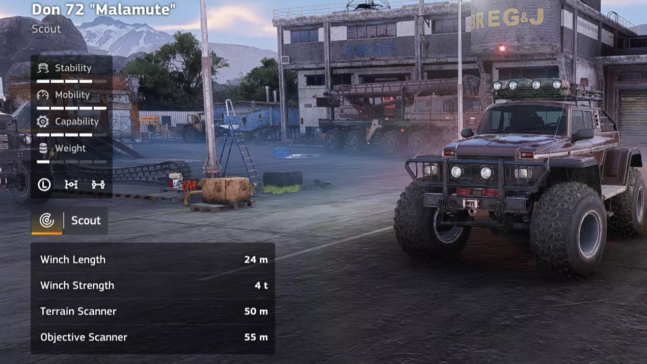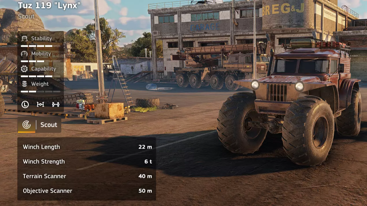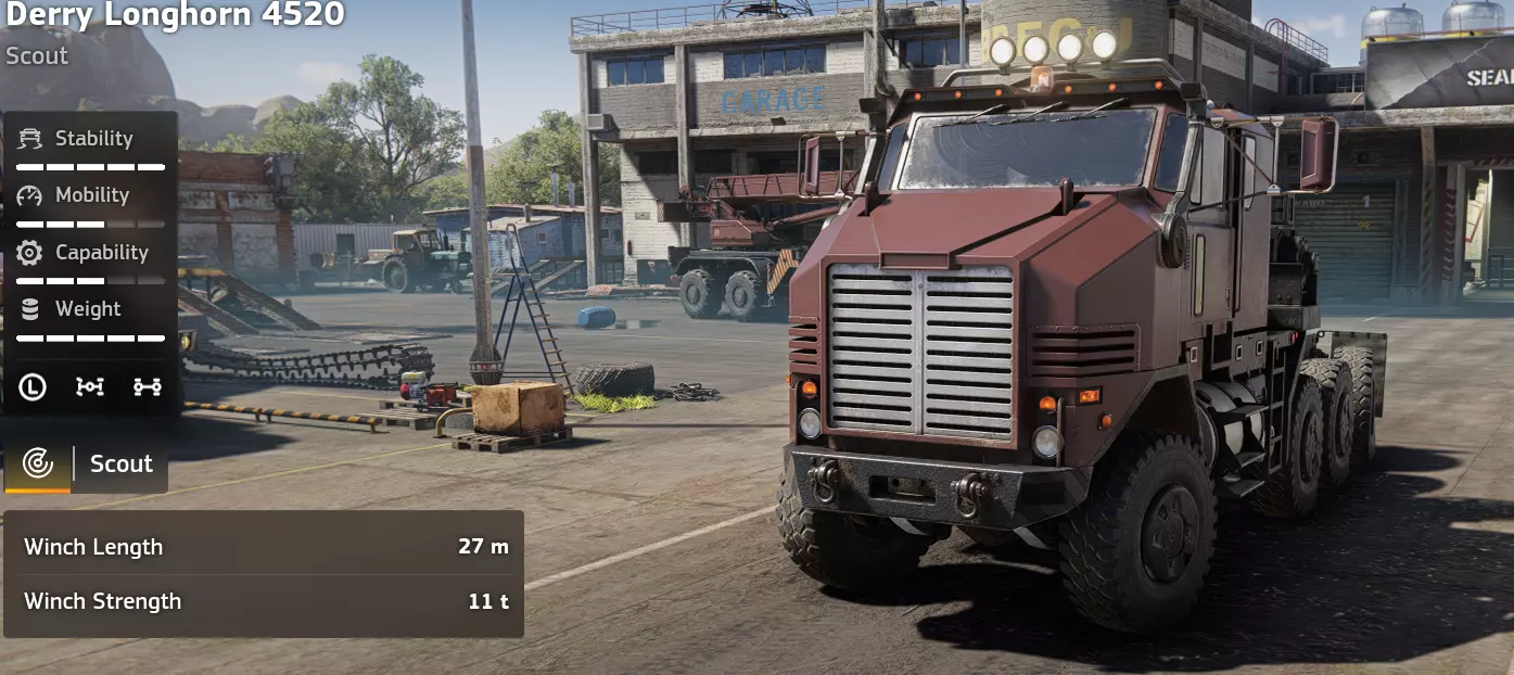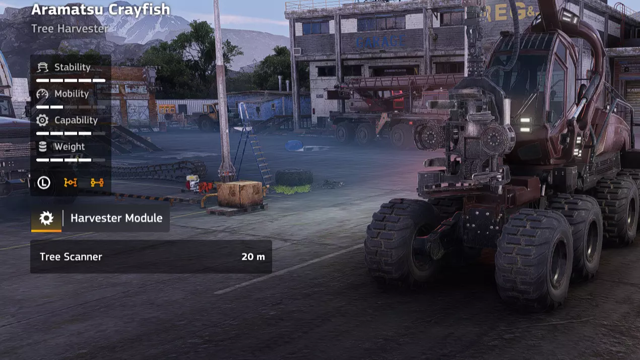 价格:24,000 解锁条件:【Incommunicado】 说明:在载货状态下,糟糕的转弯半径已经很烦人了,而当你试图在树桩、木柴堆和其他林业设备之间穿梭时,简直是种折磨。你也可以再存1000 credits购买Kronenwerk的集材机,它可能在泥泞路面的表现和稳定性上稍逊一筹,但至少你不用为了对准木材而进行20点转向。不过,如果你能忍受这极差的转向,该车辆在其他方面还是相当实用的。 优点: - 用途相当广泛 - 价格便宜 - 越野性能良好 - 耐超载 缺点: - 转弯半径极差 - 伐木作业(Kronenwerk L-34 *Loader)