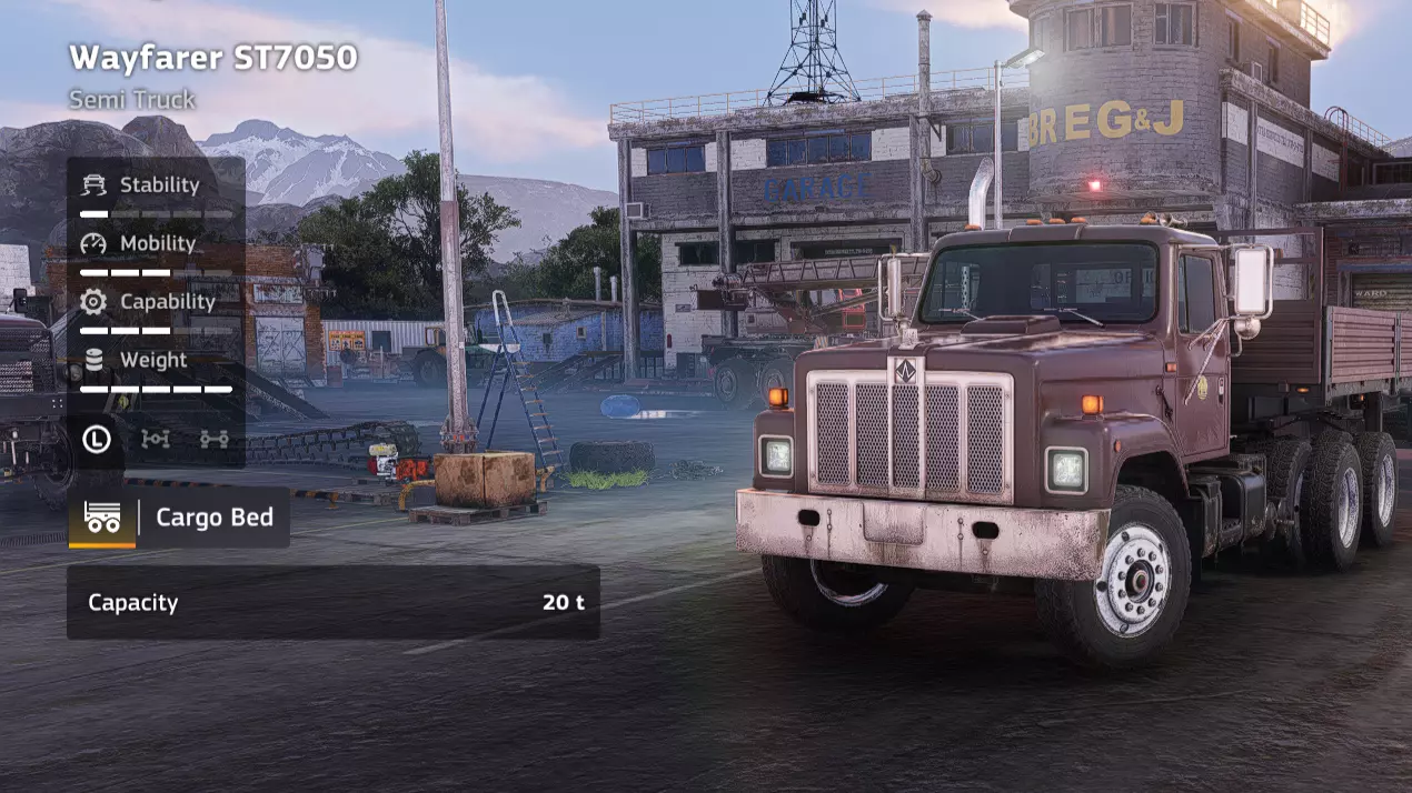 价格:25,000 解锁条件:沉没 说明:这是一款极其重要的载具,它是游戏中仅有的两款专用车辆运输载具之一,也是最大的车辆运输载具。在每个任务中,你肯定会多次召唤它。其明显用途是运输车辆,但同时也具备惊人的载货能力。 优点:游戏中最佳的运输/货运载具;即使负载沉重,仍拥有不错的越野能力;极大提升游戏体验;游戏中最高的载货容量;全游戏流程均适用 缺点:低平板拖车容易陷入困境;车身较长且拖车不可拆卸 特殊设备:Wayfarer ST7050