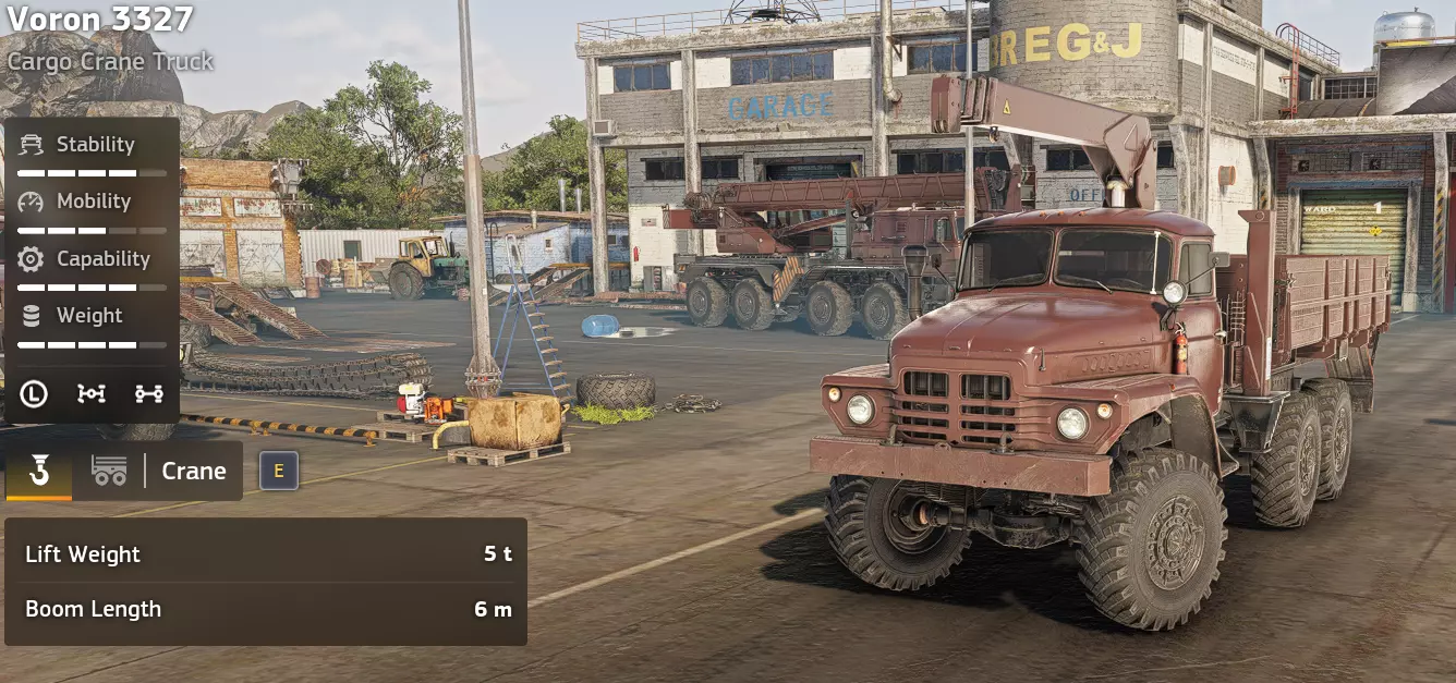 价格:29,500 解锁条件: 备注:这是一辆很棒的载具,真正需要考虑的是立即购买穆勒T1起重机,还是稍等一下购买这辆卡车。沃龙更稳定,货箱更大,但解锁时间稍晚且价格略高。 优点: 出色的平台 极大提升游戏体验 用途极其广泛 起重机和锚点非常适合扶正车辆 非常稳定 缺点: 有更早解锁的同类载具 起重机(贝加尔59-16)