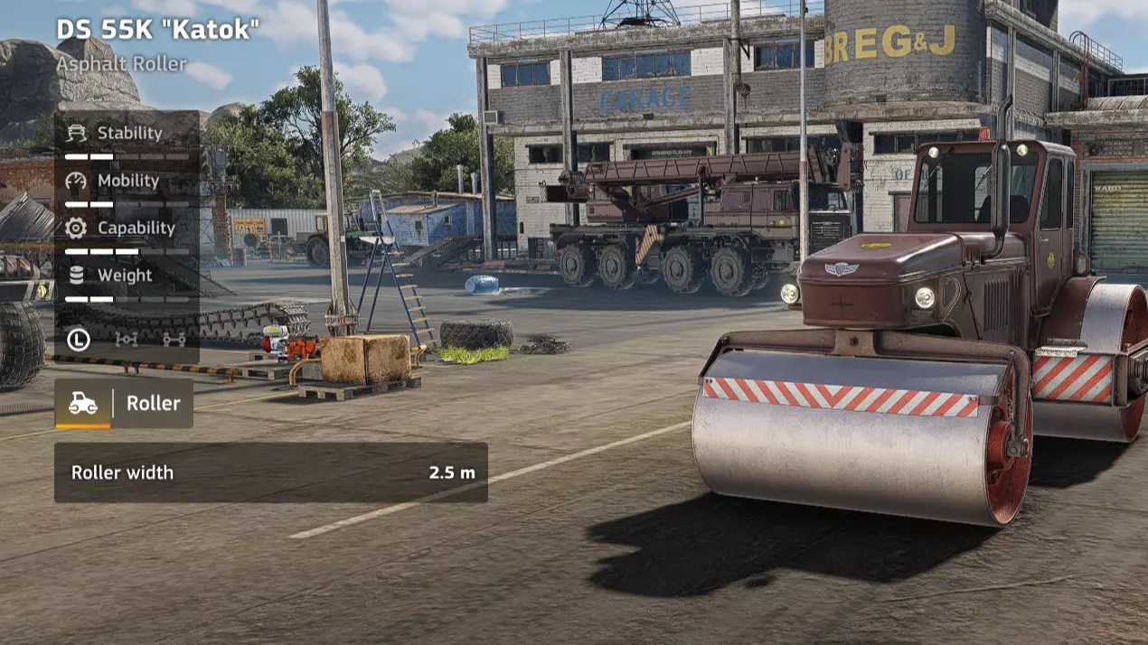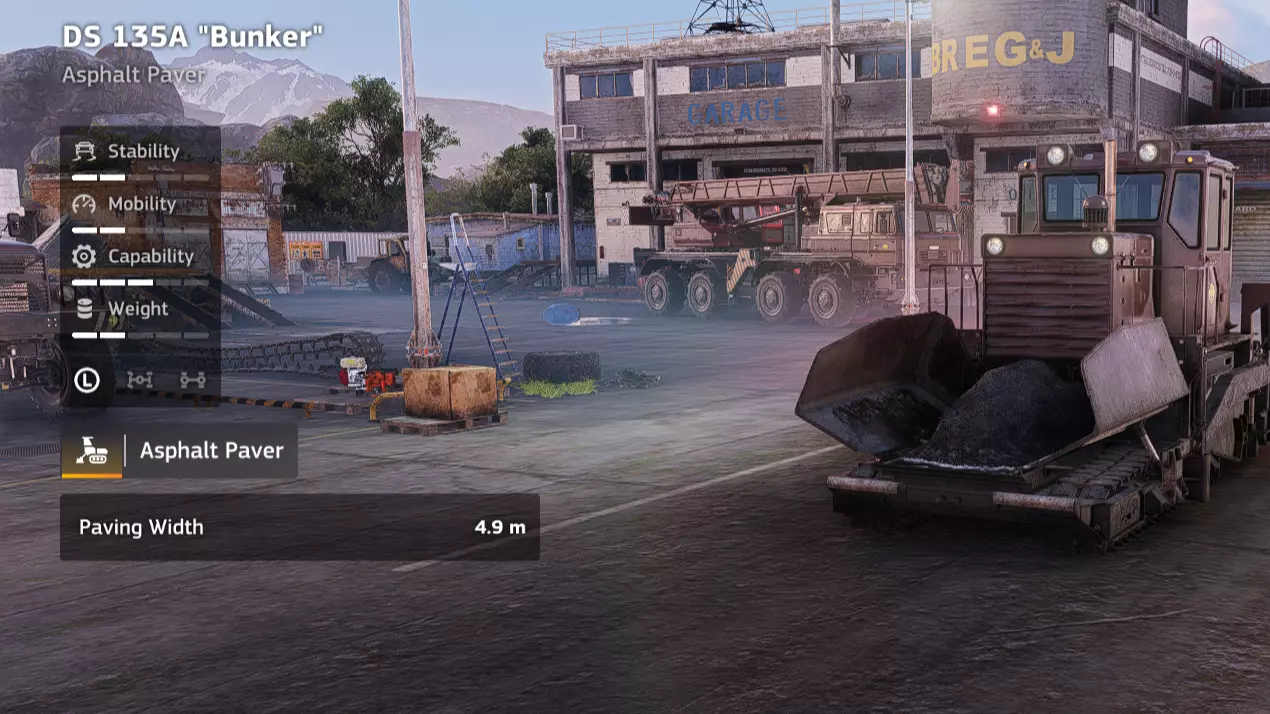 价格:31,000 解锁条件:余波之后 说明:与【Katok】压路机类似,升级生锈的摊铺机和压路机并不太值得。摊铺时机动性提升几乎不明显,不摊铺时应将其放在运输车上。邦克摊铺机的可取之处在于,下一个更好的沥青摊铺机升级幅度不大,因此可以理解继续使用邦克摊铺机的选择。 优点:体积小 缺点:沥青摊铺机 宽度比升级款更短 道路工程(【Katok】DS 55K)
