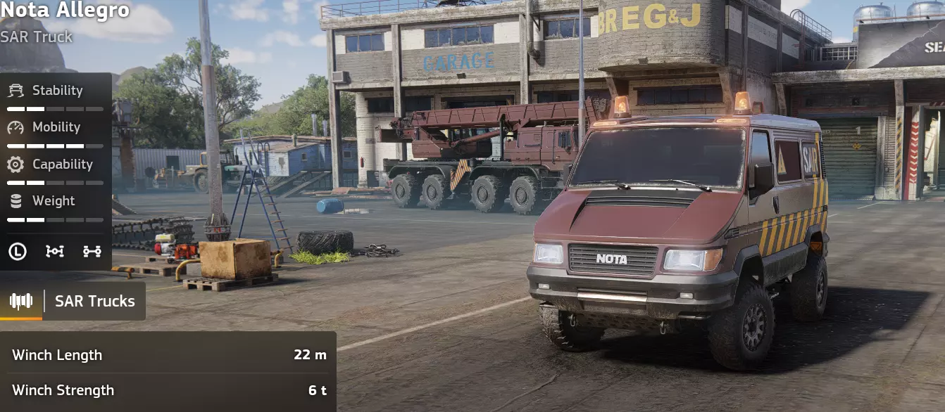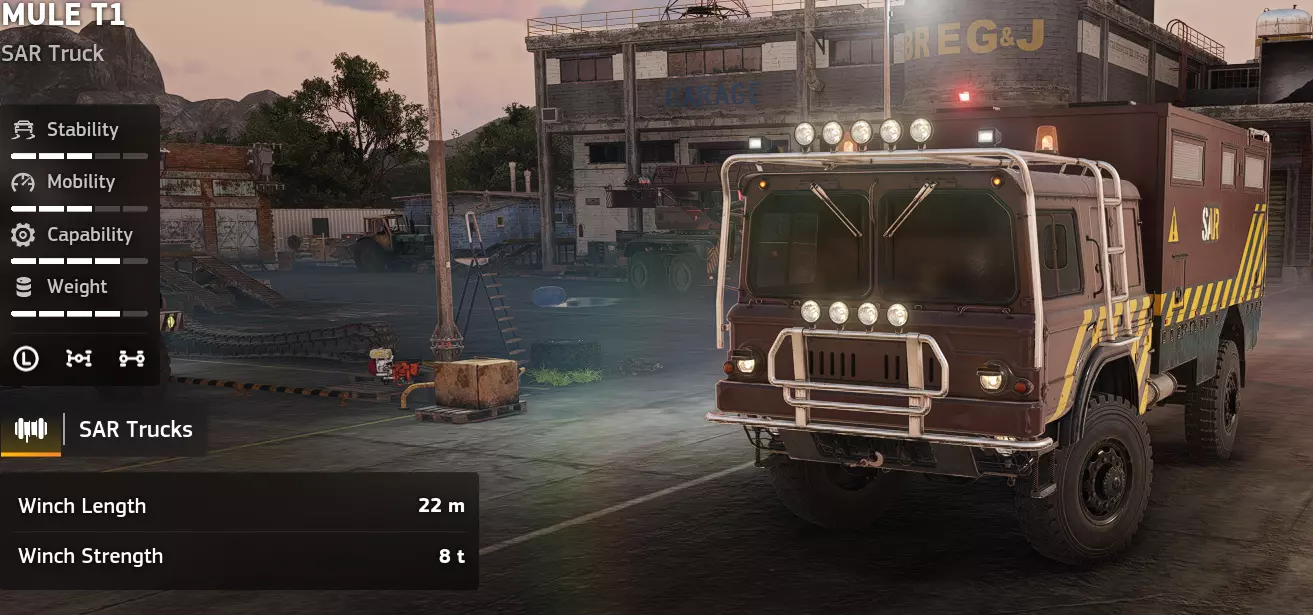 价格:45,000 解锁条件: 备注:遗憾的是,骡式平台存在稳定性问题,使其并非一款实用的救援载具。它的价格也非常昂贵。该载具与SAR Pike的功能高度重叠,因此如果确实需要购买其中一款,可根据个人喜好选择。 优点: - 同级最佳牵引力 - 200升辅助油箱 缺点: - 悬挂偏软且车身较高 - 适用场景有限 - 价格相对昂贵