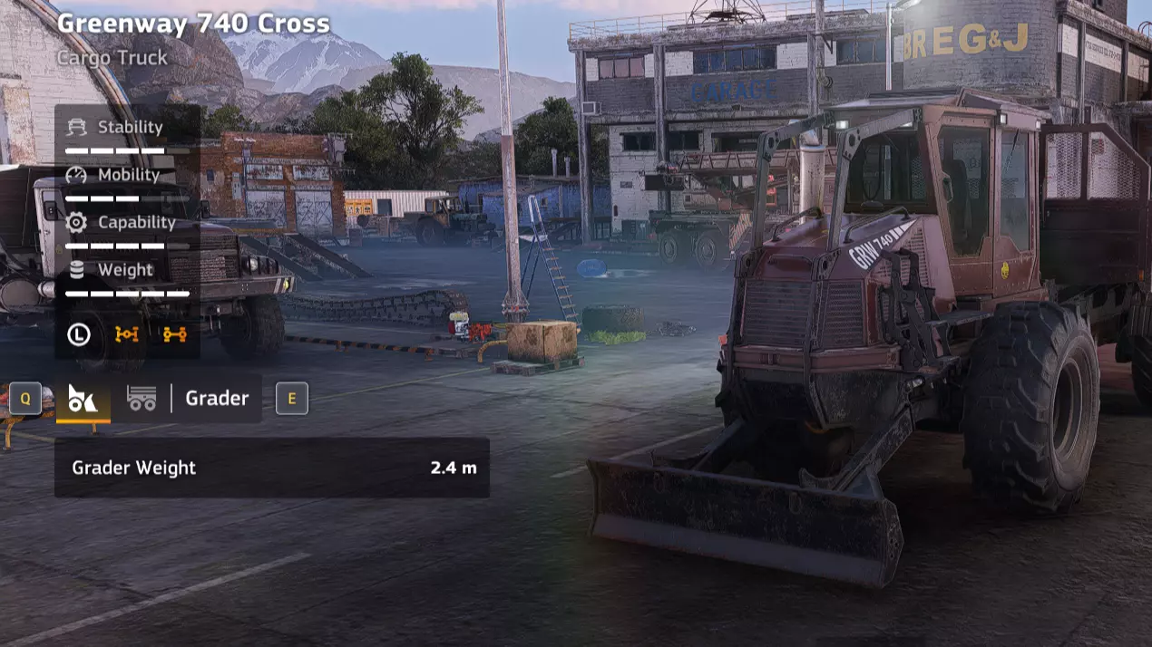 价格:26,000 解锁条件:公司等级5 备注:不错的货运/推土混合动力载具。当你考虑购买它时,你已经拥有了在特定任务上表现更好的载具。遗憾的是,它似乎无法像其他推土机那样自动完成道路修建。 优点:容量尚可,实际载货量似乎远超宣传 推土铲可用于推垃圾、岩石和树桩 具备一定多功能性 抗超载能力强 缺点:推土铲非常短且效果不佳 货箱尺寸小 性价比低 货物(Greenway 740 Cross Blade)