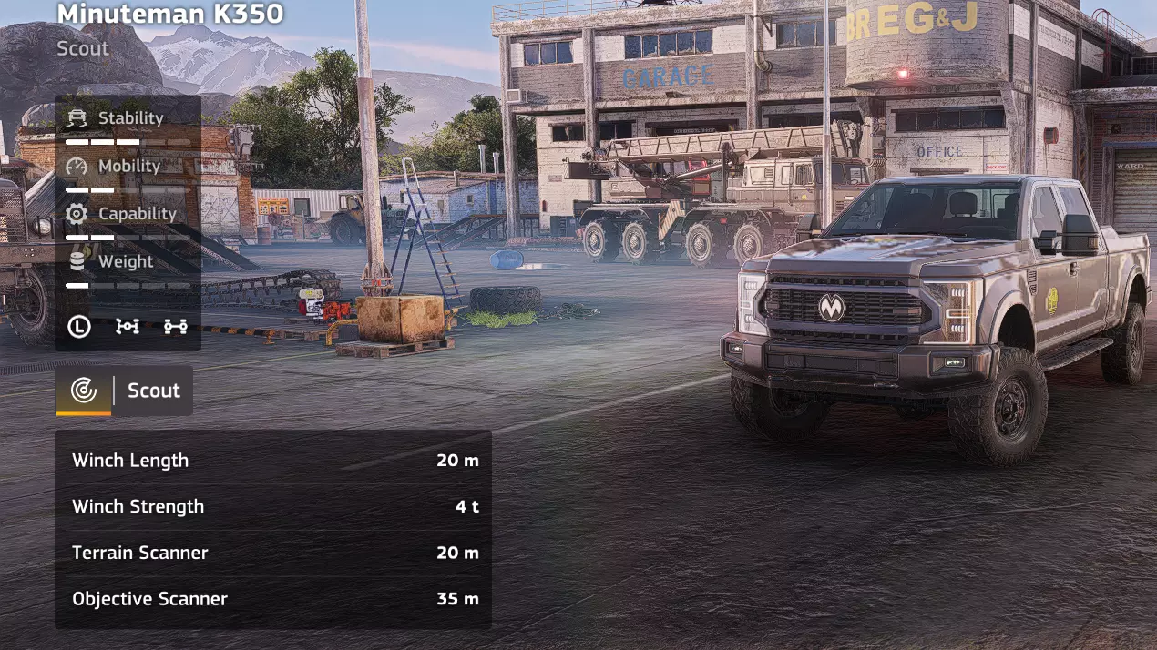 价格:17,800 解锁条件: 备注:这是一辆相当不错的侦察车,虽然自身并非特别出色,但足以取代Armiger SAR。侦察车额外的燃油量相当实用,越野能力的小幅提升也有帮助。如果在游戏初期急需一辆侦察车,这是个不错的选择。 优点:价格便宜,性能可靠 缺点:功能冗余,被Malamute和Lynx超越 侦察车(Minuteman K350 Rescue)